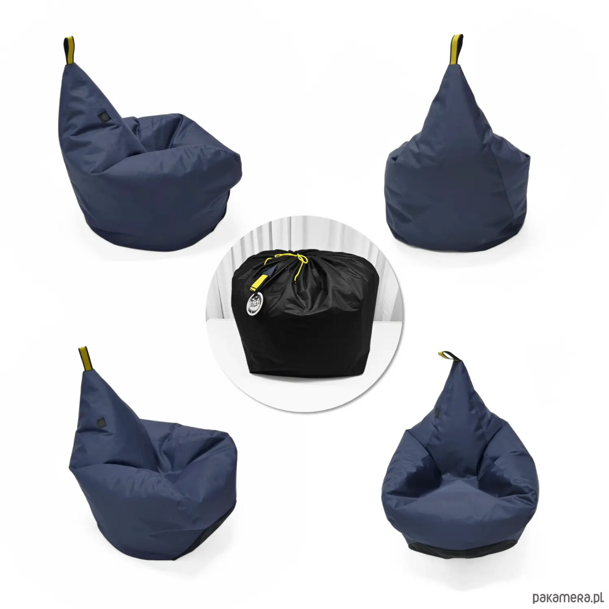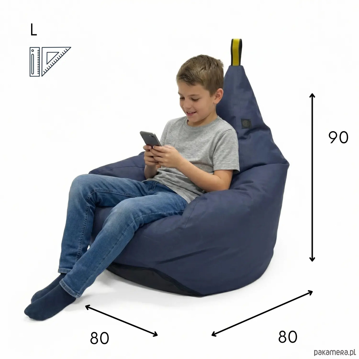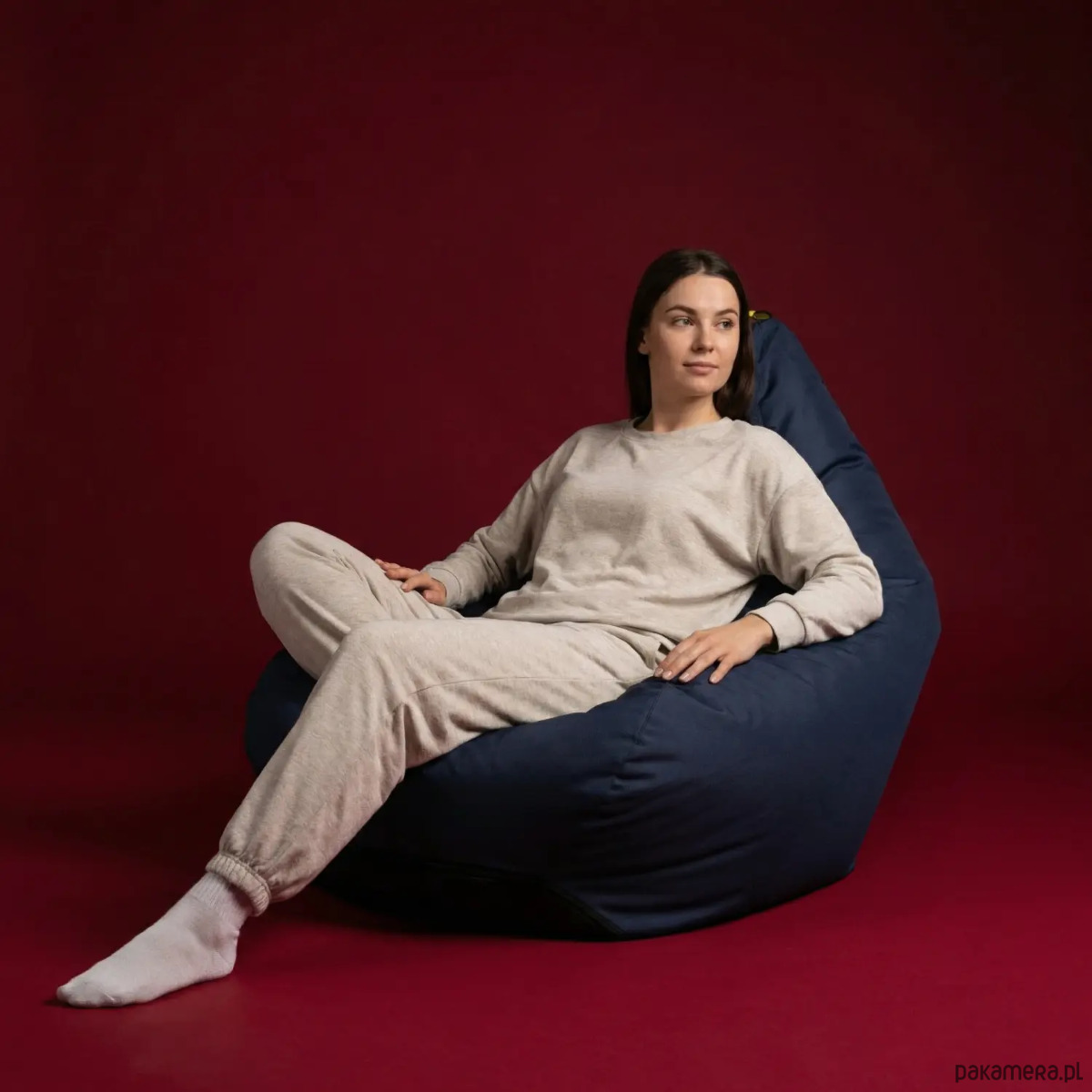 Pufa TIPI w kolorze granatowym to wygodne, nowoczesne siedzisko inspirowane formą fotela, idealne do salonu, pokoju dziecka, młodzieżowego wnętrza, strefy relaksu lub tarasu. Jej charakterystyczny kształt zapewnia stabilne podparcie pleców i komfortowy odpoczynek w każdej pozycji.