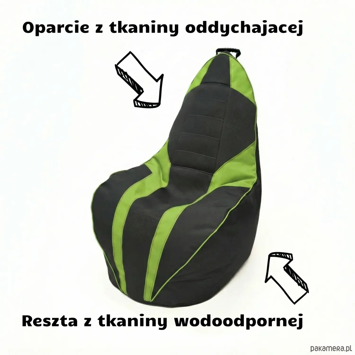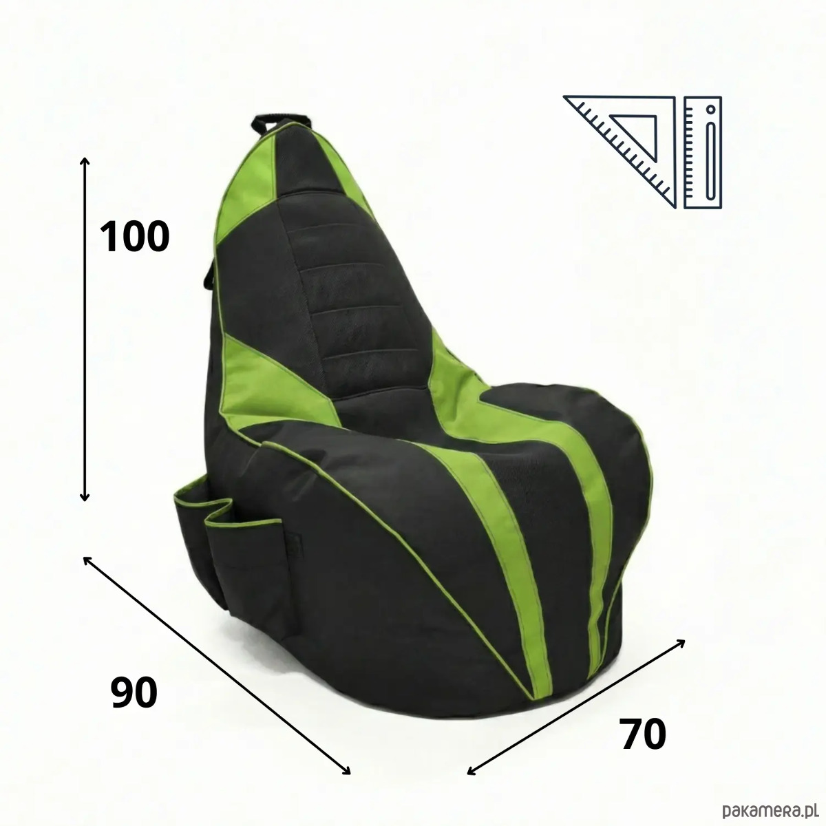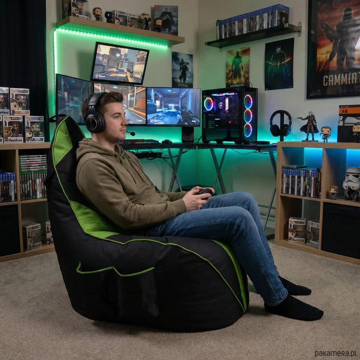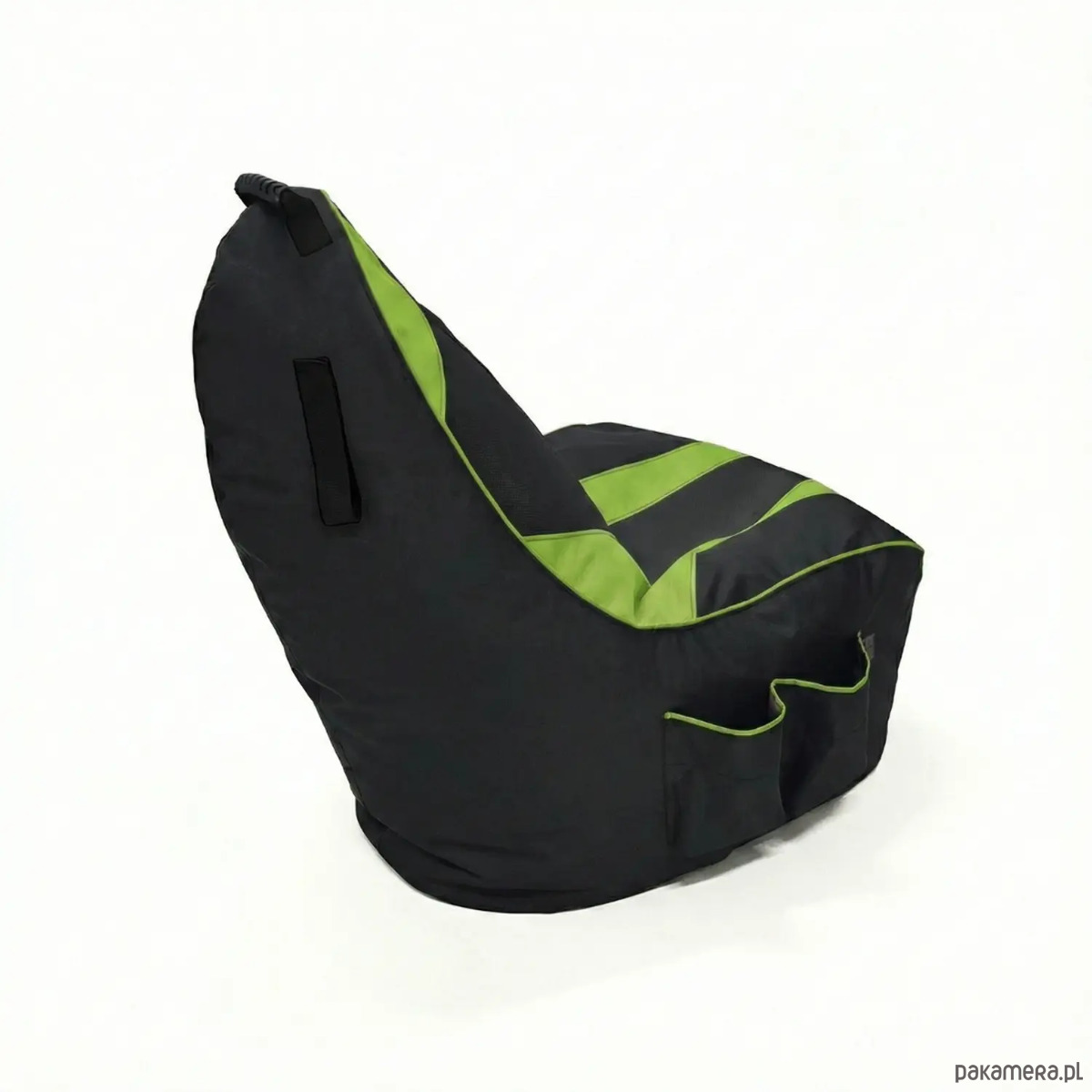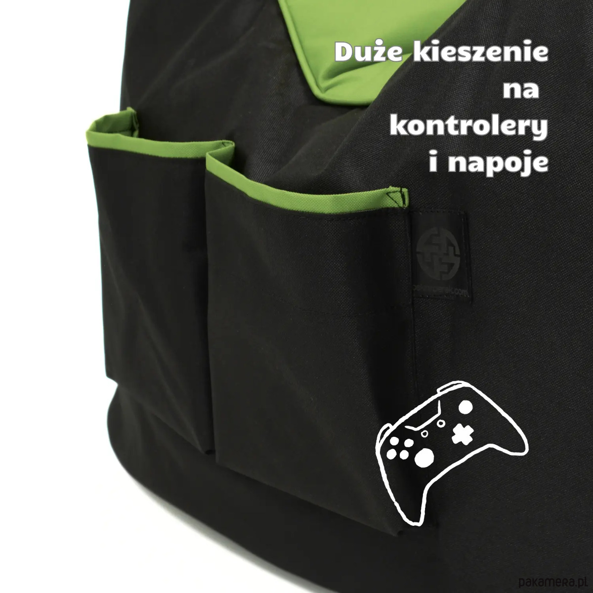 Pufa gamingowa dla dzieci i dorosłych czarno zielona z duzymi kieszeniami