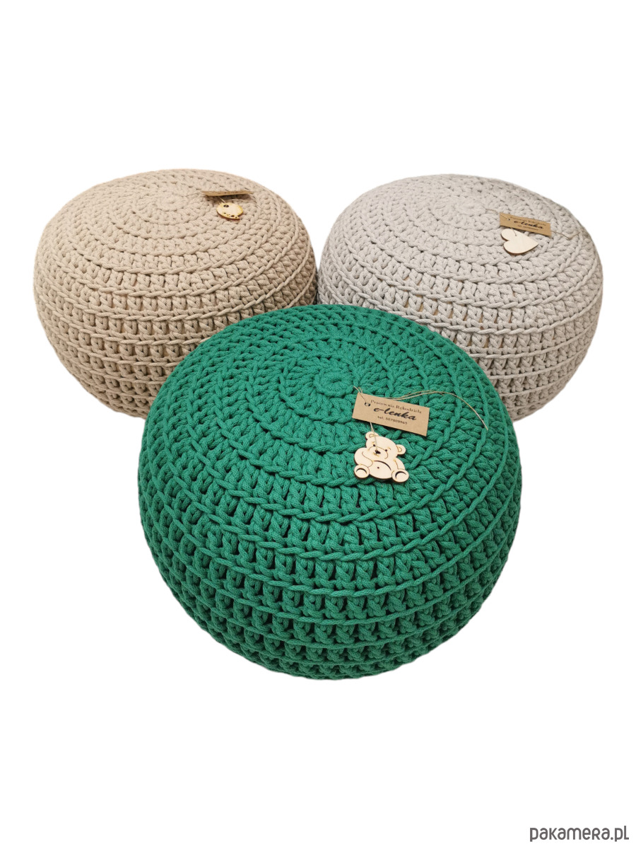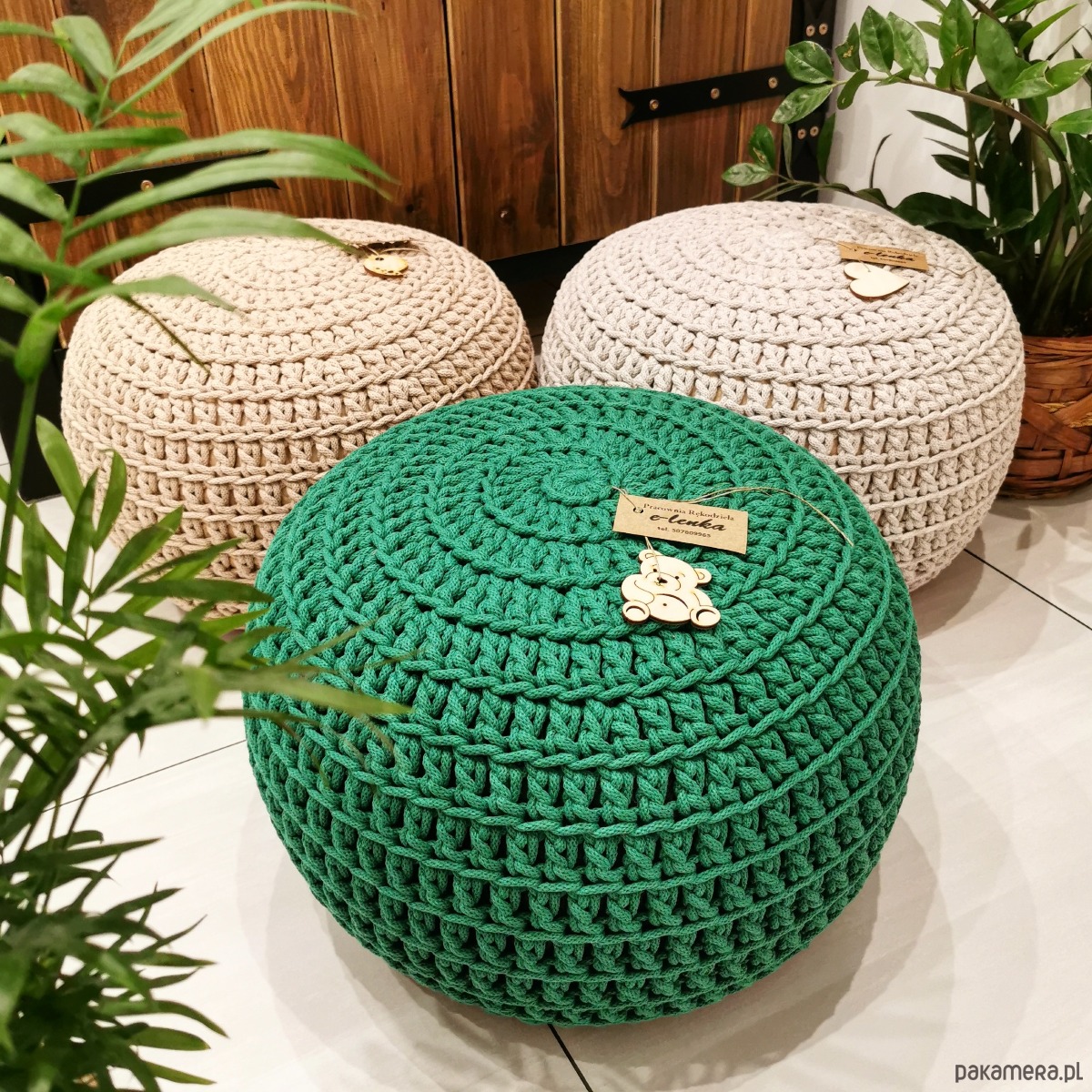 Ręcznie wykonany puf z grubego sznurka bawełnianego o średnicy 5mm.