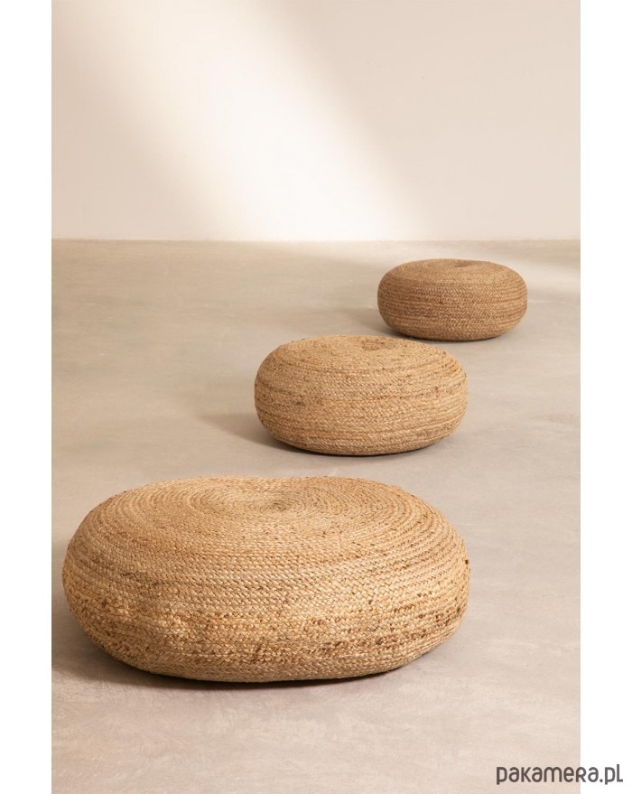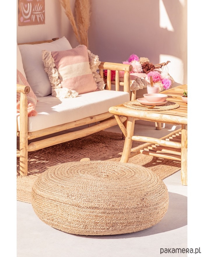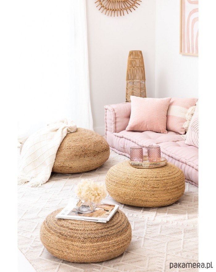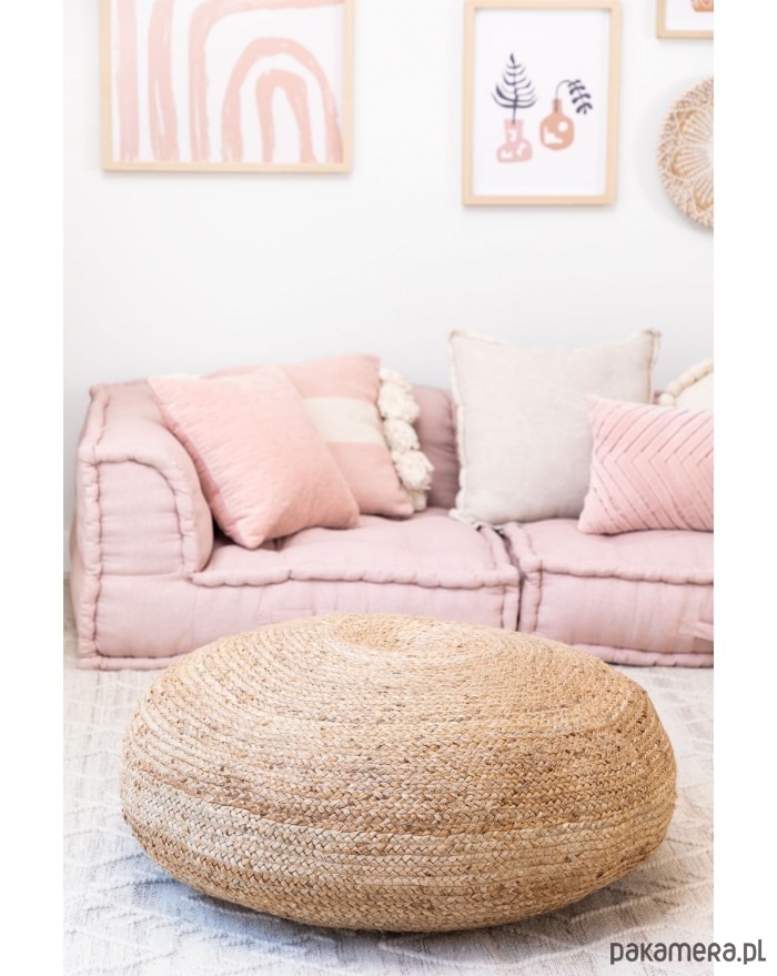 Duża pufa/poducha do siedzenia na podłodze. Wykonana ręcznie z plecionej juty. Idealne dopełnienie do sofy lub fotela. Ze względu na ręczne wykonanie produkt może posiadać niedoskonałości, które czynią każdą sztukę unikatem.