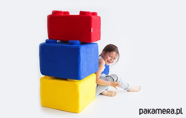 Puffka w kształcie klocka. Wymiary: 40x40x27. Kolor do wyboru: żółty, czerwony,niebieski. Wypełnienie: pianka Dodatkowo poducha posiada ściągany pokrowiec, który można prać w pralce w temp. 30 st. C