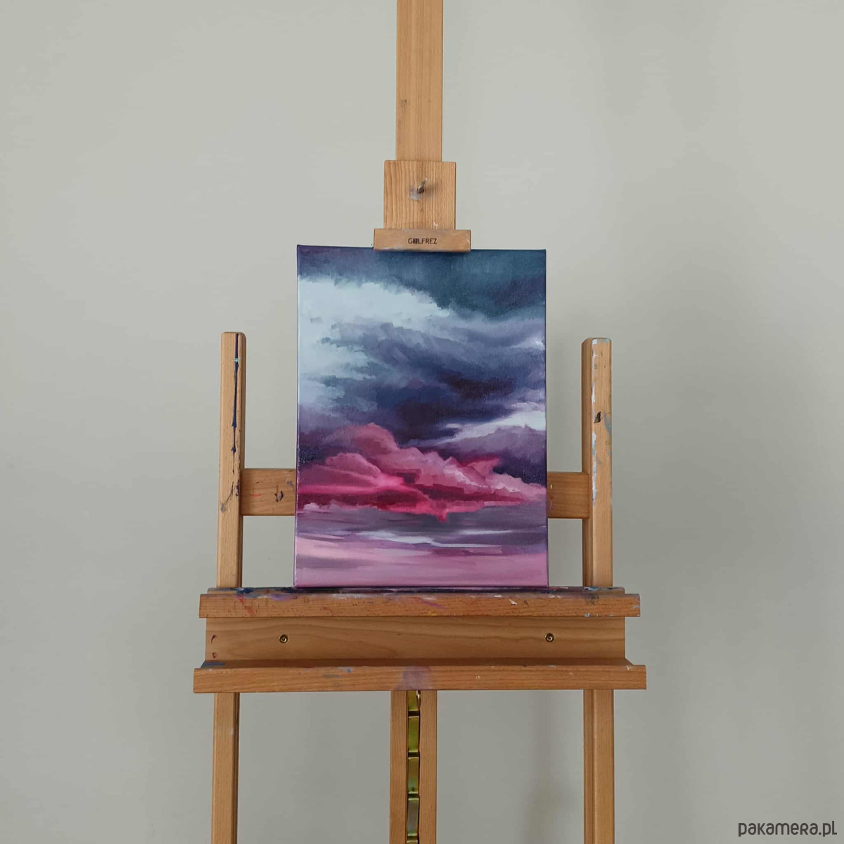 Obraz namalowany farbami olejnymi na płótnie o wymiarach 30 × 40 cm.