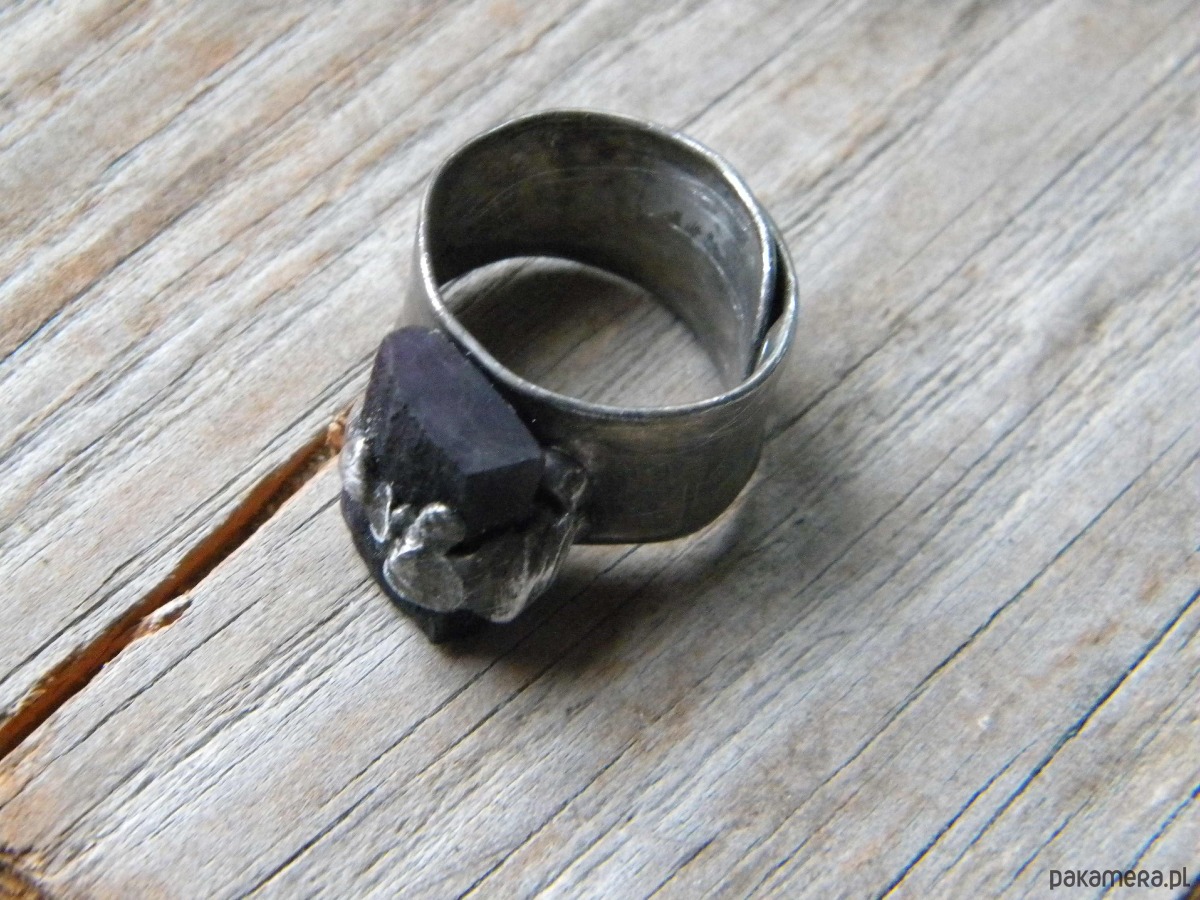 surowy purpuryt oprawiony w ocynowaną miedz.