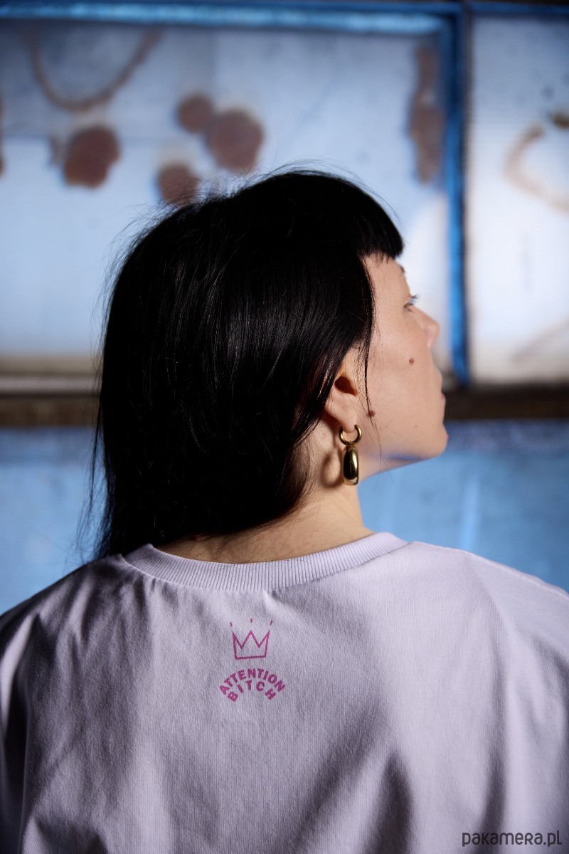 Z tyłu niewielkie logo ATTENTION BITCH, a na lewym rękawku drobny akcent w postaci korony.