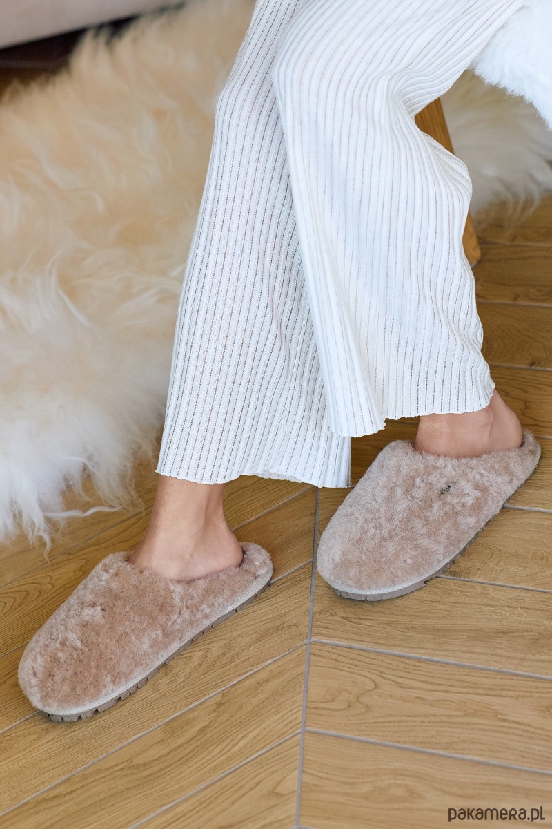 Puszyste kapcie wełniane VANUBA ze skóry owczej beżowe