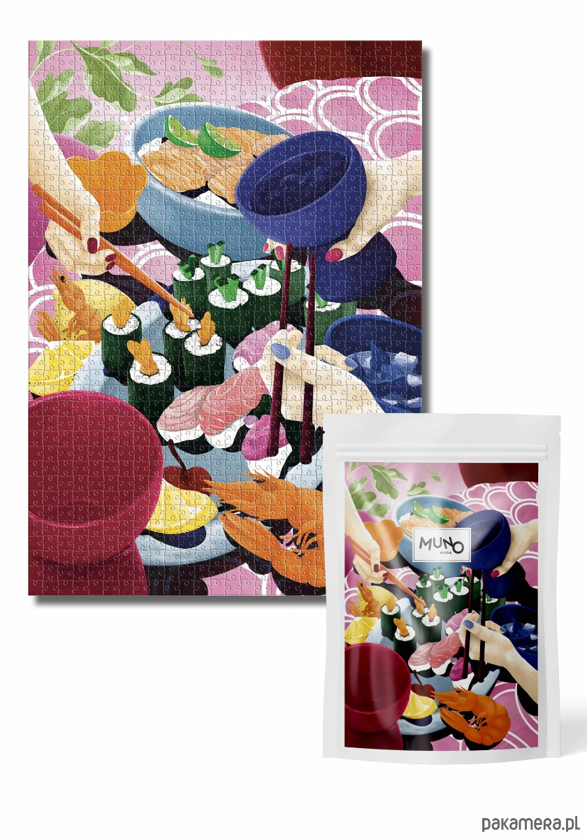 Puzzle 1000 elementów „Munomaki” to idealne połączenie pasji do układania i miłości do kuchni azjatyckiej. Te niezwykłe puzzle sushi przenoszą Cię do świata pełnego kolorów i smaków, a każdy kawałek układanki stanowi wyzwanie, które rozwesela Twoje zmysły.