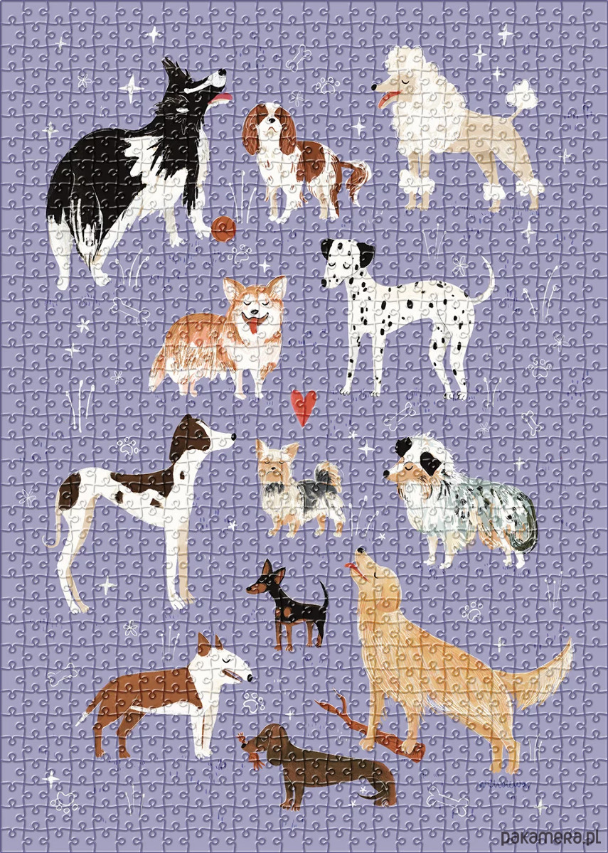 Puzzle 1000 „Psinki” ? to wyzwanie dla wszystkich, którzy nie potrafią wybrać ulubionego psa. Teraz nie musisz decydować – po ułożeniu puzzli będziesz mieć je wszystkie w jednym, magicznym obrazie! ??