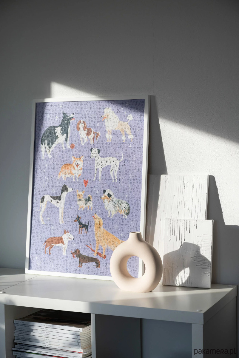 „Puzzle Psinki” to również świetna okazja, by stworzyć swoje własne dzieło sztuki. Wystarczy, że dokupisz ramy do puzzli oraz klej. To idealny sposób na utrwalenie piękna czworonogów i wyeksponowanie swojej pasji do psów.