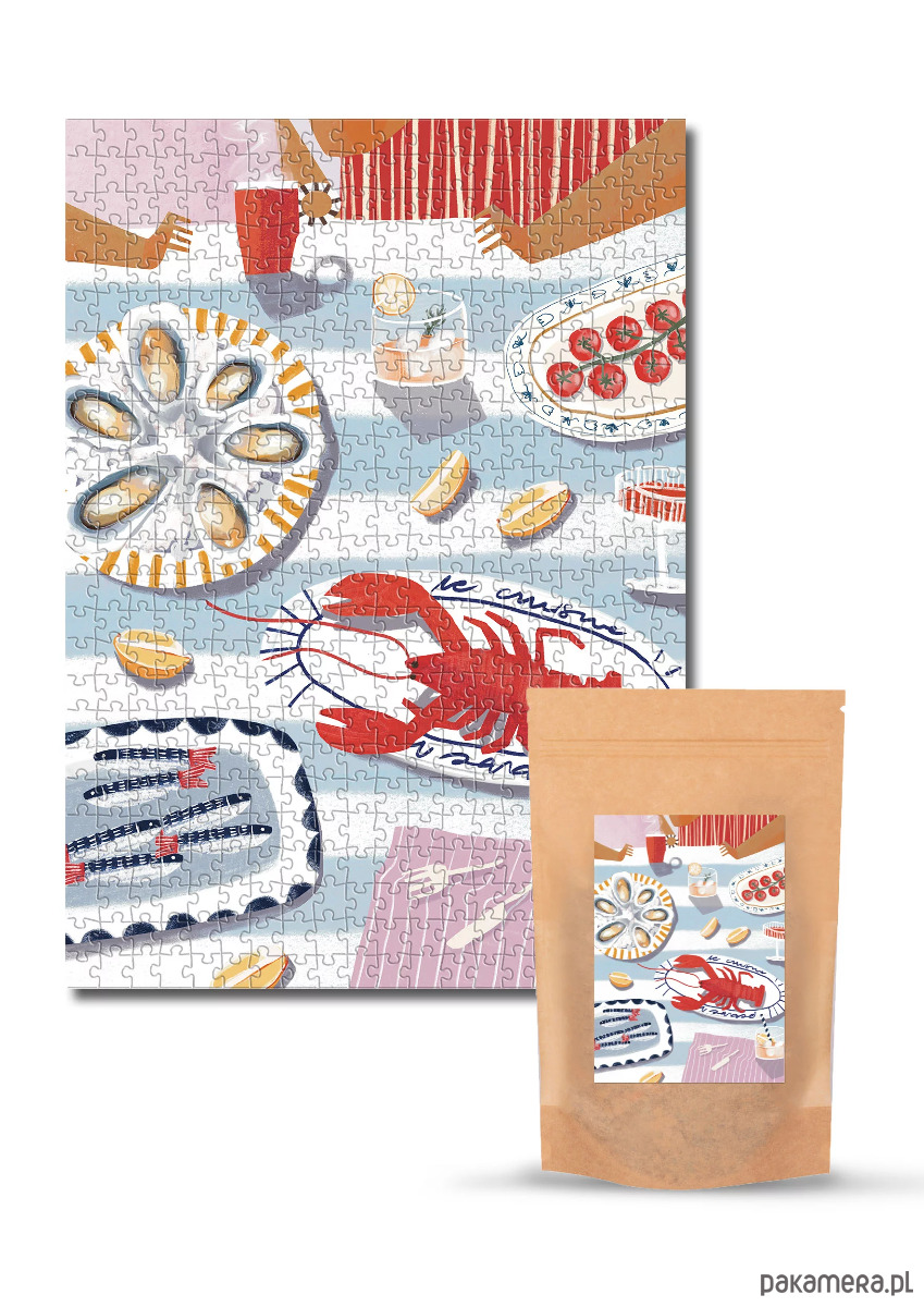 Gotowy na prawdziwą morską fiestę? Ułóż puzzle, które smakują jak ciepłe, letnie popołudnie nad wybrzeżem oceanu. Ostrygi, cytryny, homary i sardynki układają się kawałek po kawałku w luksusową ucztę. Zanurz się w niej łącząc wyjątkowe smaki na Twoim stole i poczuj jak morski klimat wypełnienia Twoje wnętrze. Każdy element tego obrazu to jak łyk orzeźwiającego koktajlu w słoneczny dzień – świeży, pełen smaku, idealnie dopasowany ??