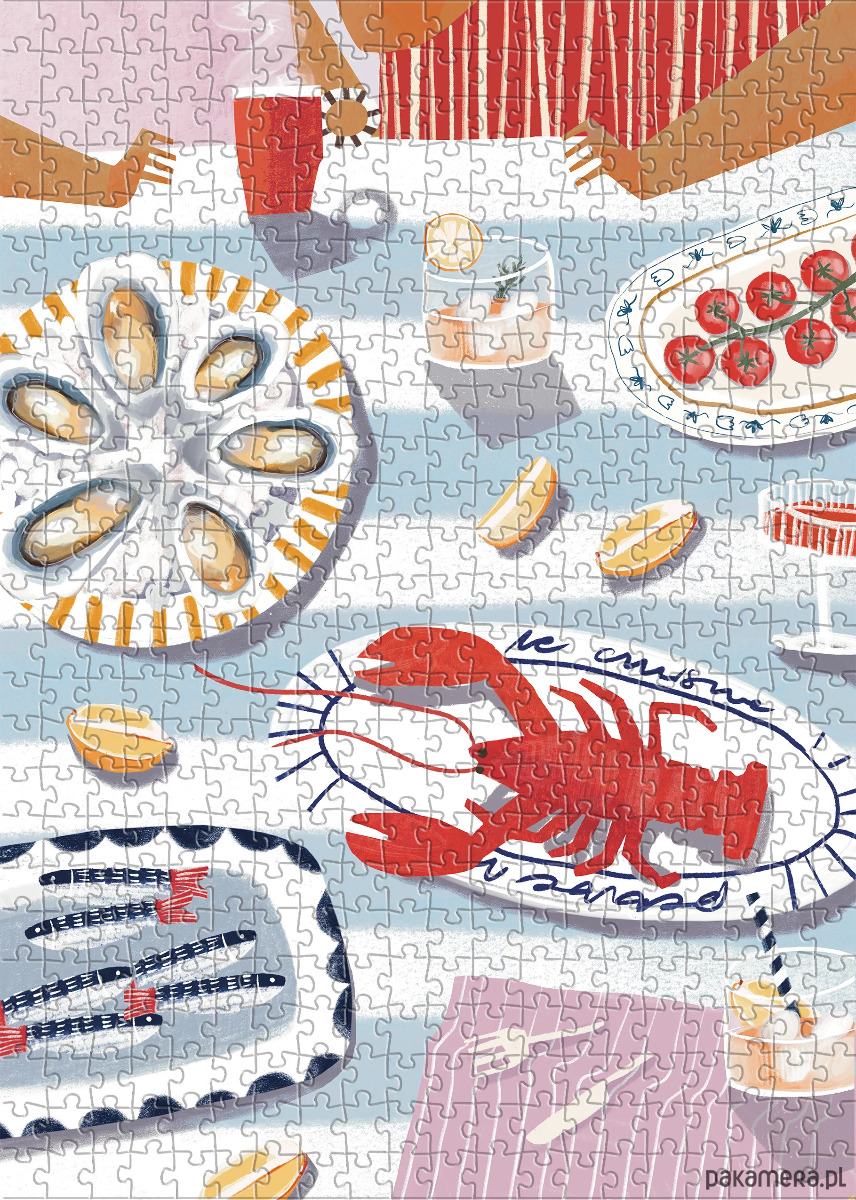Gotowy na prawdziwą morską fiestę? Ułóż puzzle 500, które smakują jak ciepłe, letnie popołudnie nad wybrzeżem oceanu. Ostrygi, cytryny, homary i sardynki układają się kawałek po kawałku w luksusową ucztę. Zanurz się w niej łącząc wyjątkowe smaki na Twoim stole i poczuj jak morski klimat wypełnienia Twoje wnętrze. Każdy element tego obrazu to jak łyk orzeźwiającego koktajlu w słoneczny dzień – świeży, pełen smaku, idealnie dopasowany ??