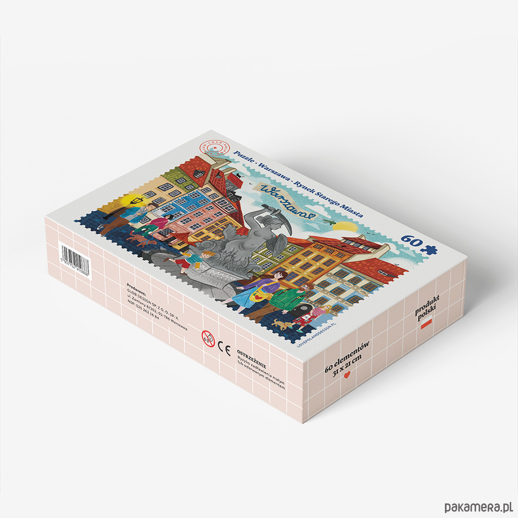 Puzzle 60 elementów, a ich wymiary po ułożeniu to 31x21cm. Zaprojektowane i wyprodukowane w Polsce, jak wszystkie nasze produkty.