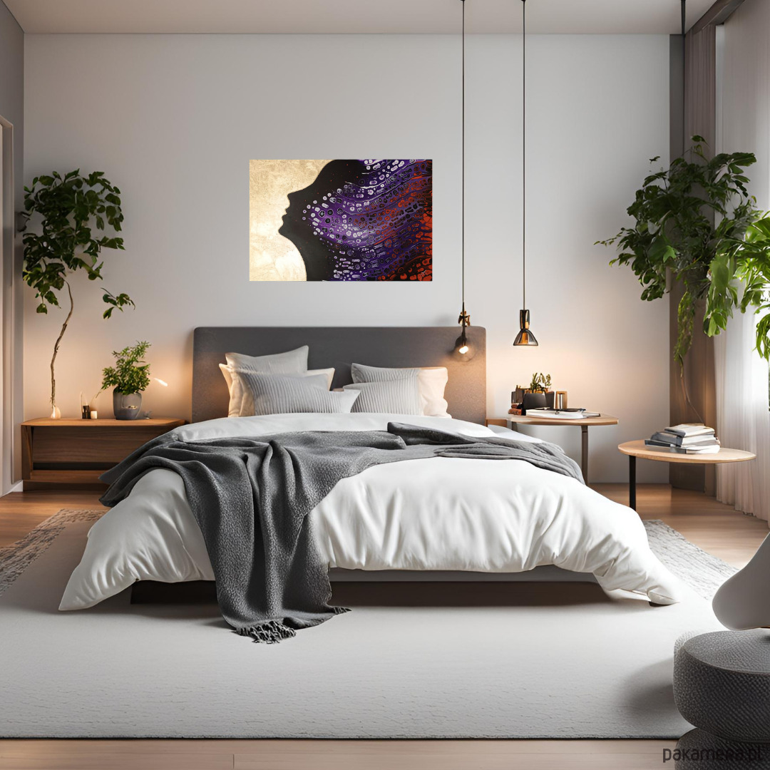 Fiolet na gorącym, złotym tle! Kobieta zanurza się w cieple letniej nocy, w dynamicznym tańcu z tym, co nieznane.