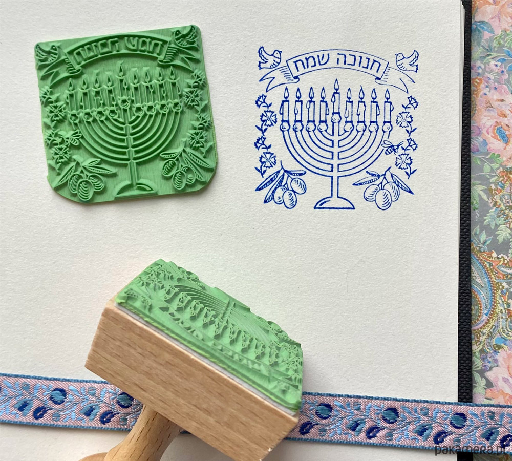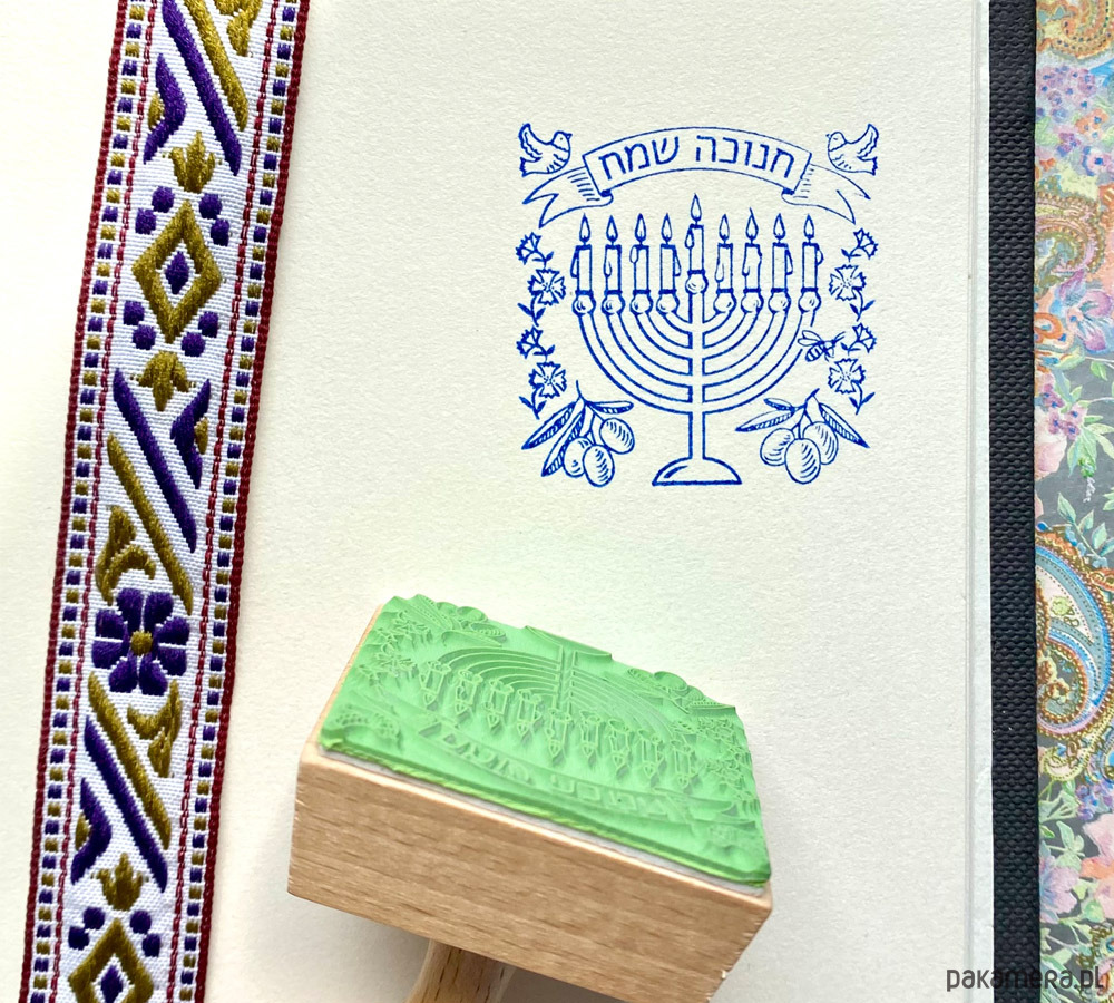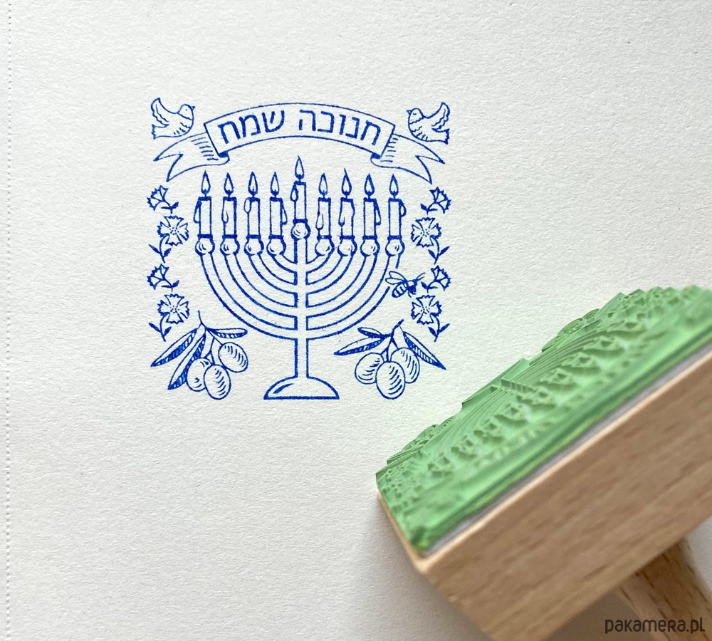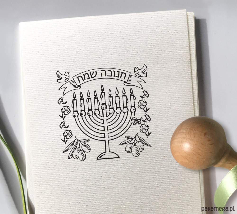 Radosnej Chanuki! drewniany stempel do dekoracji kart świątecznych, zawieszek na prezenty żydowskie święto świateł.