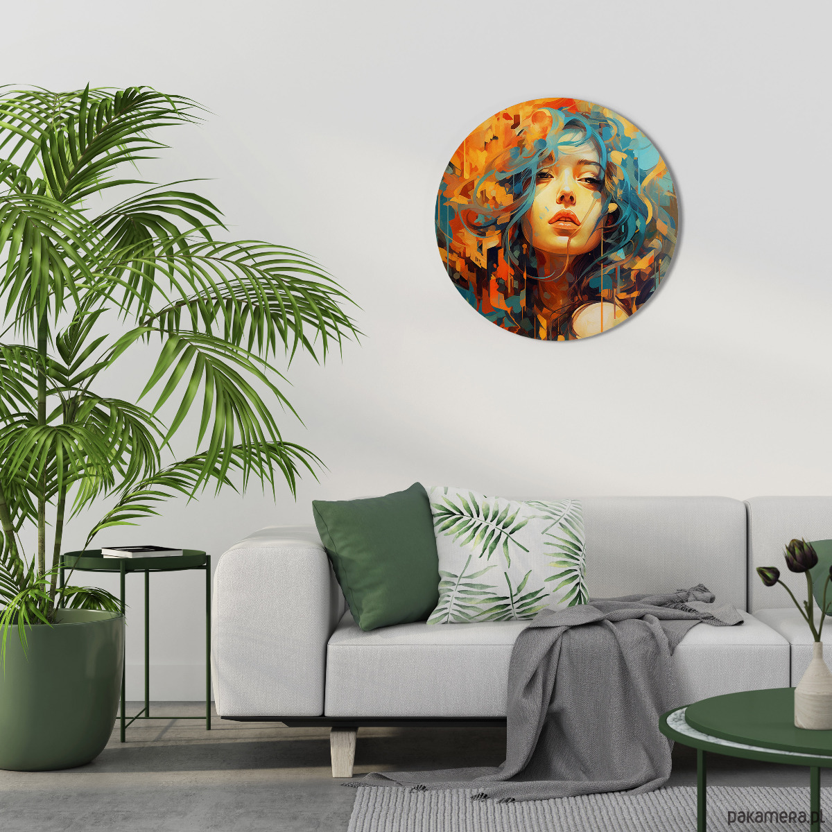 Wprowadź do swojego wnętrza wyjątkowy charakter dzięki eleganckiemu okrągłemu obrazowi. To nowoczesna dekoracja ścienna, która idealnie komponuje się z różnymi stylami aranżacji – od minimalistycznych, przez klasyczne, aż po boho.