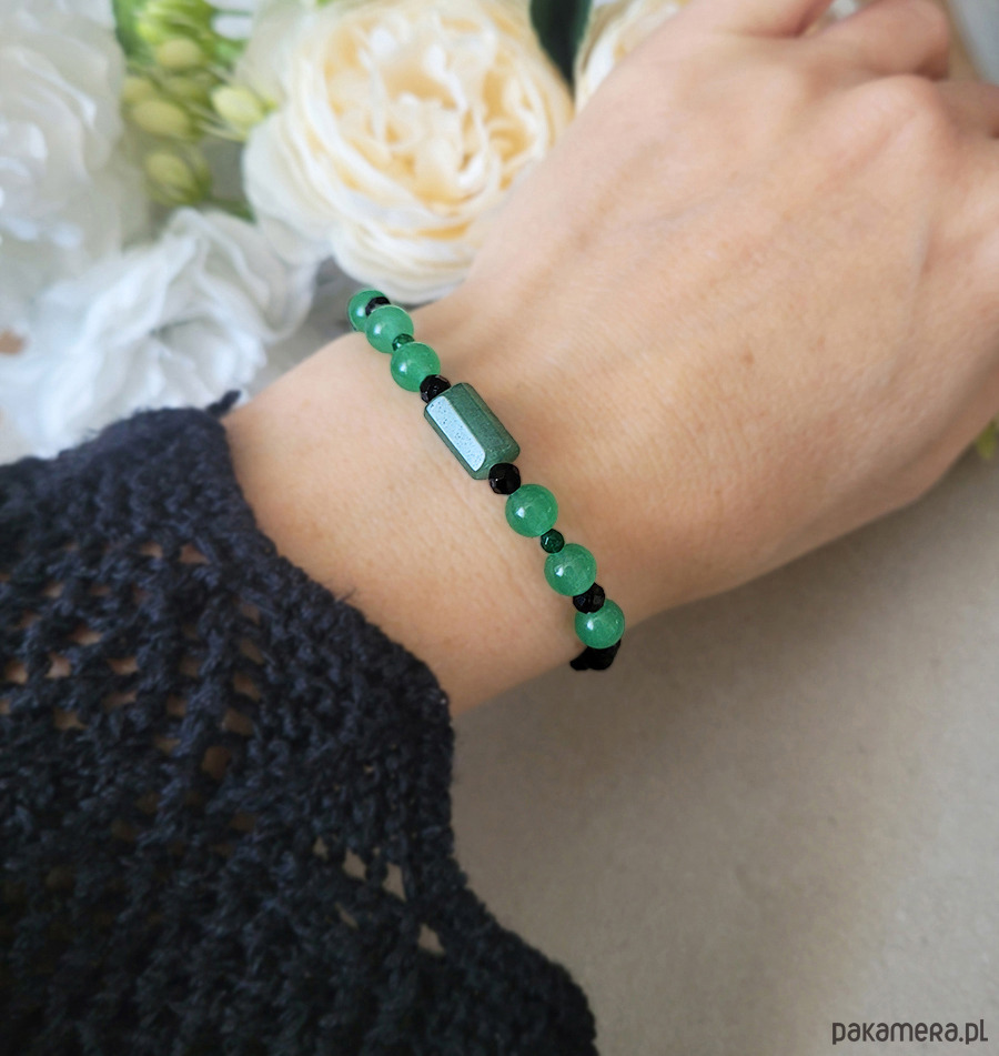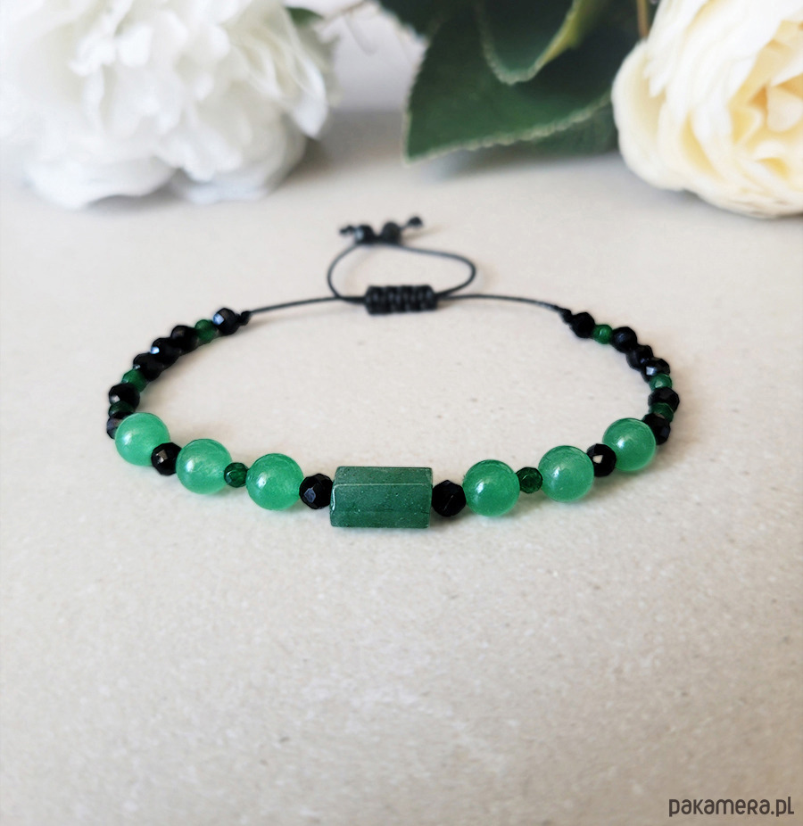 Elegancka bransoletka zrobiona z kamieni naturalnych: Awenturynu, Jadeitu oraz Spinelu przeznaczona szczególnie dla zodiakalnego Raka.