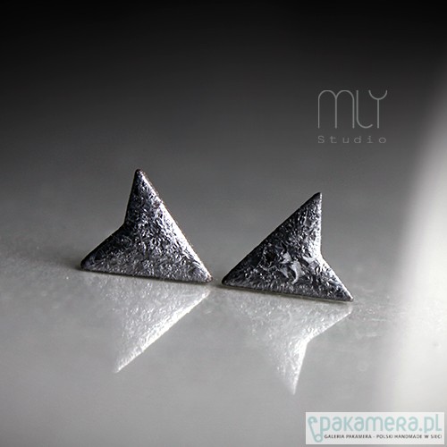 Ceramiczne kolczyki w formie sztyftów, ręcznie wykonane z delikatnej czekoladowobrązowej gliny kamionkowej, jednostronnie szkliwione mieszanką srebrzystoszarych szkliw z efektem plamek, na sztyftach w kolorze srebrnym. długość ok. 11mm. Polecam