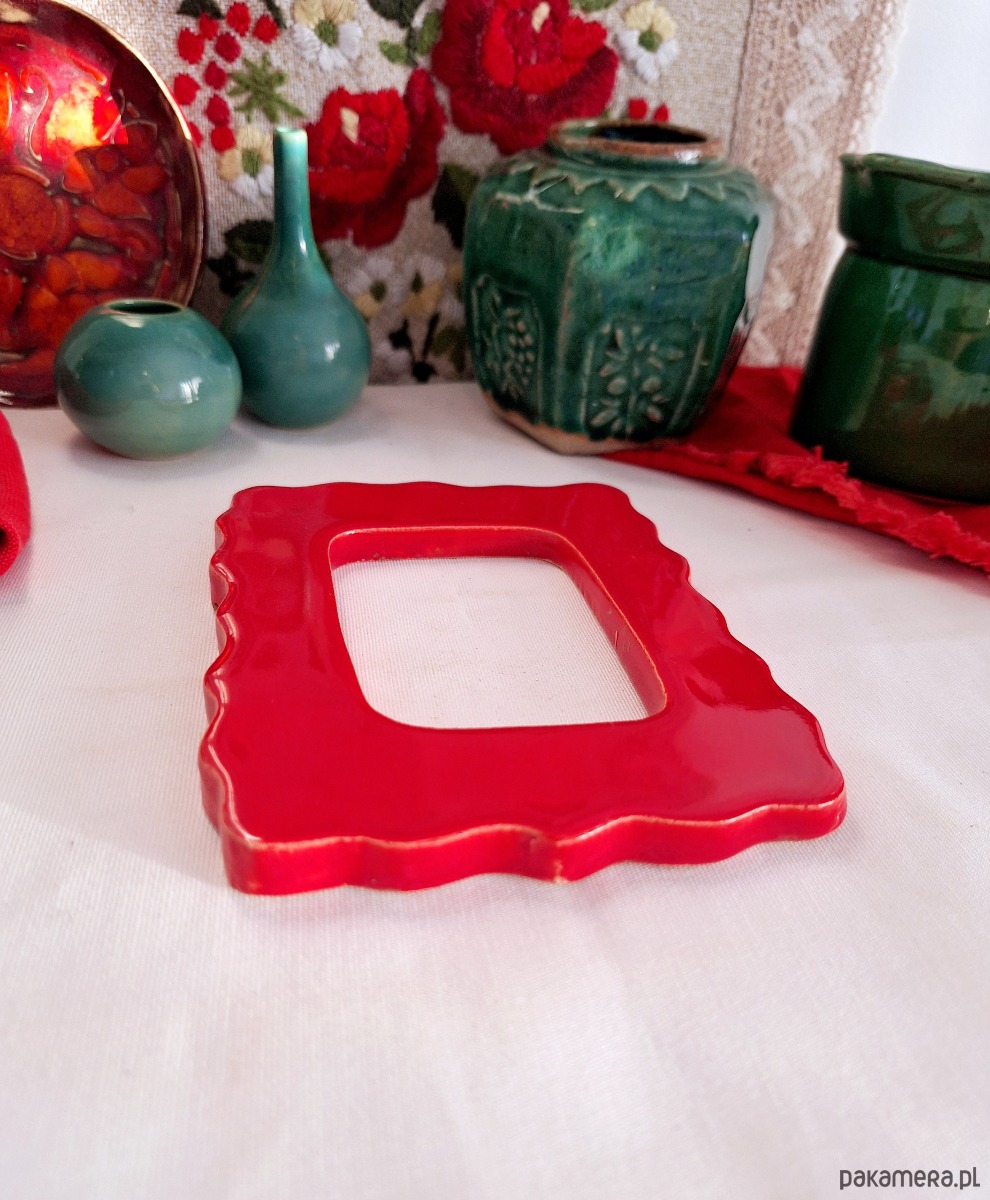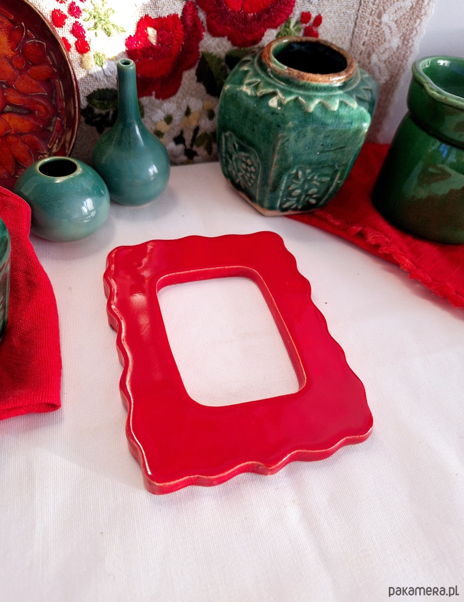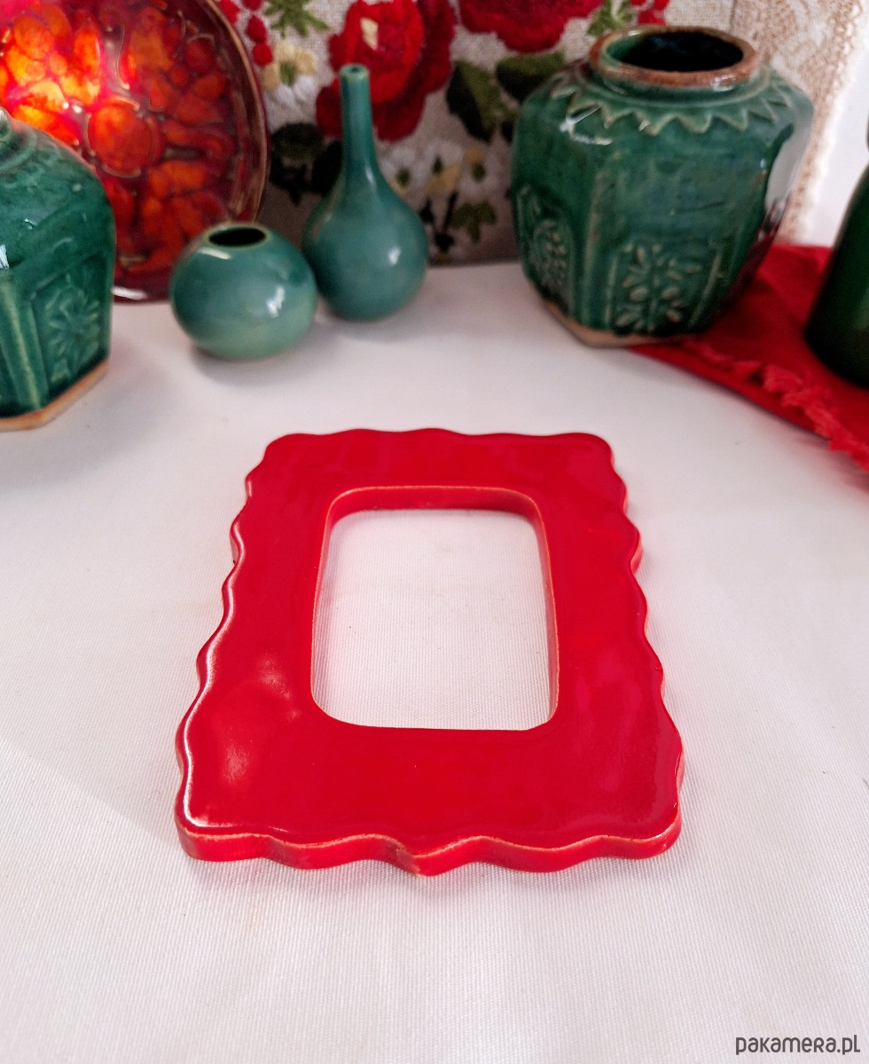 Ramka ceramiczna czerwona dekoracja ścienna