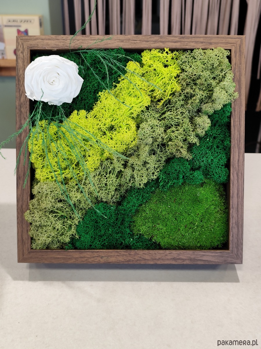 Ramka mech chrobotek wieczna róża do powieszenia postawienia dekoracja prezent