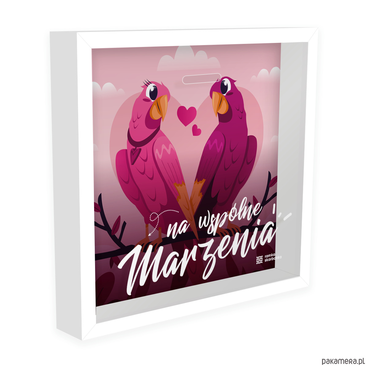 Ramka Skarbonka – Na wspólne marzenia – papużki nierozłączki