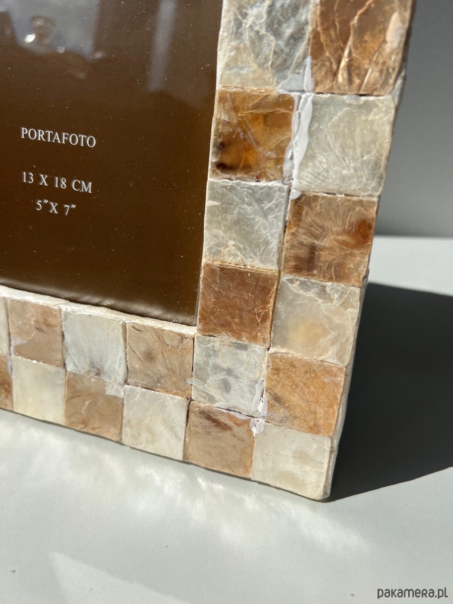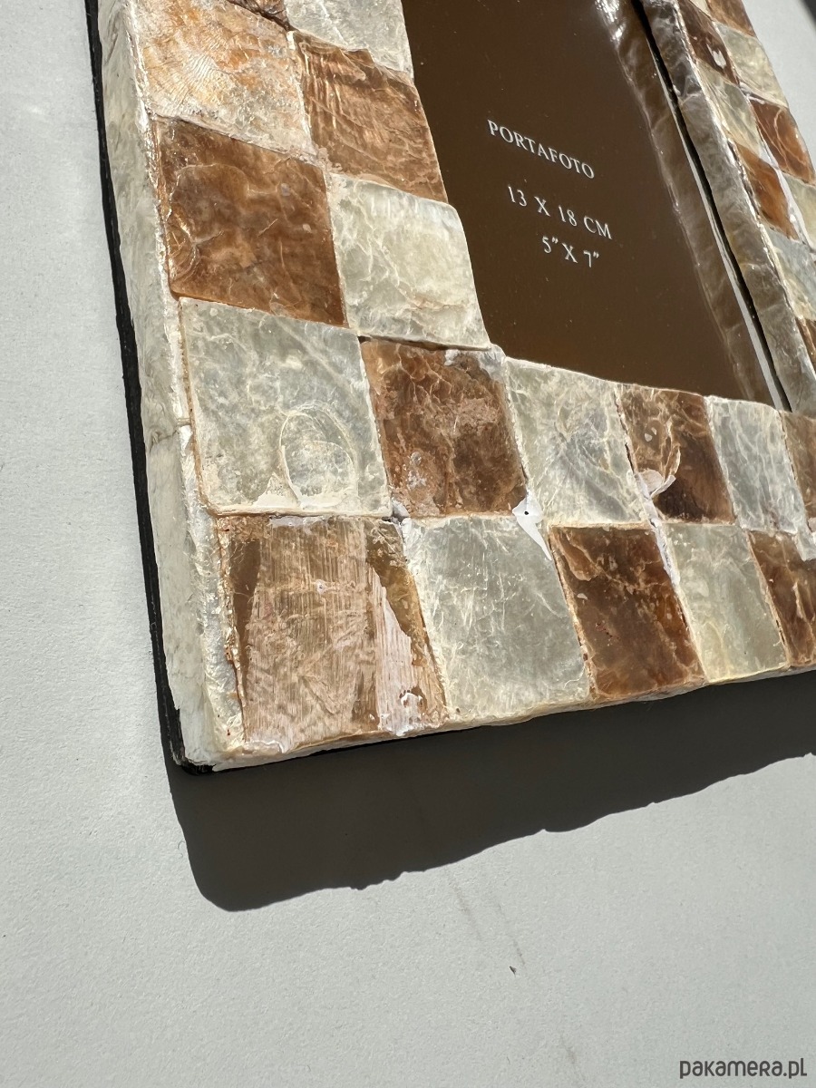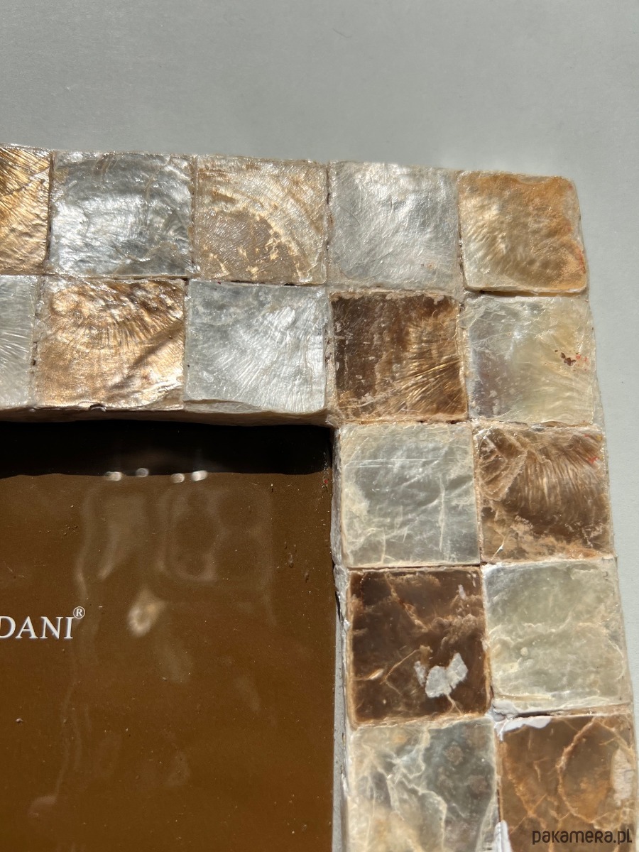 Piękna ramka z szachownicą z masy perłowej. Widoczne ukruszenia itp. Nadal jednak prezentuje się pięknie :)