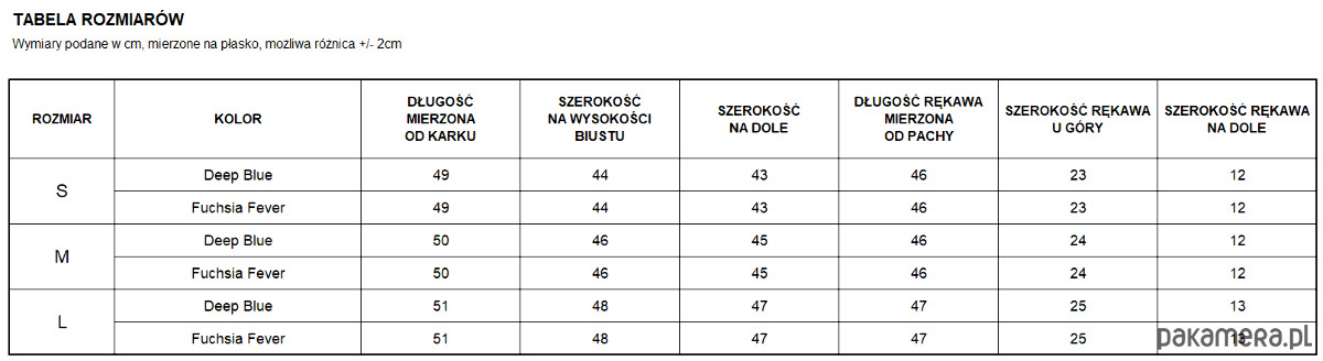 Przed zakupem, zwróć uwagę na tabelę rozmiarów.