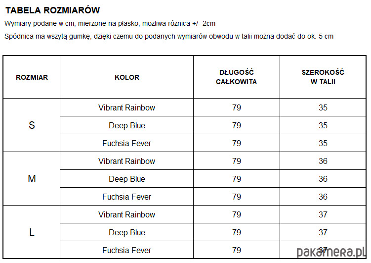Przed zakupem, zwróć uwagę na tabelę rozmiarów.