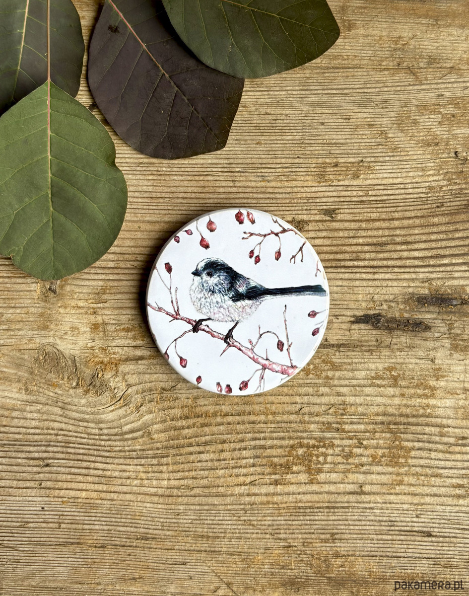 Autorska ilustracja starannie naniesiona na ceramiczny magnes. lustracja inspirowana światem rodzimej fauny oraz estetyką vintage.