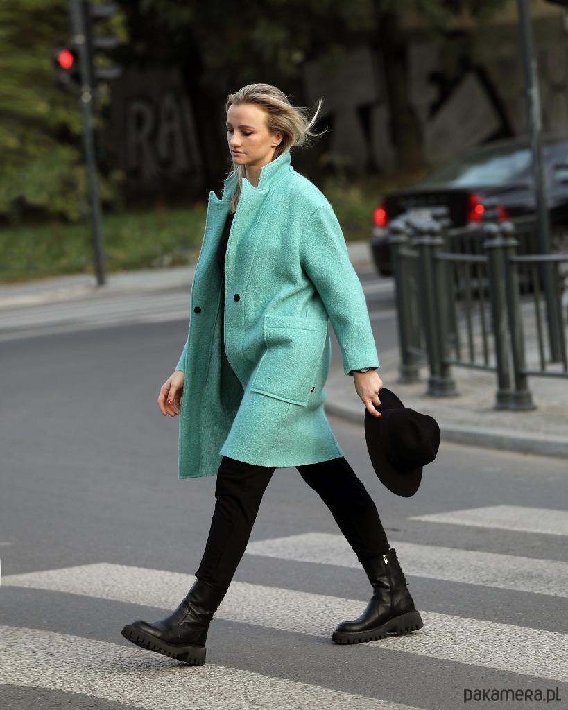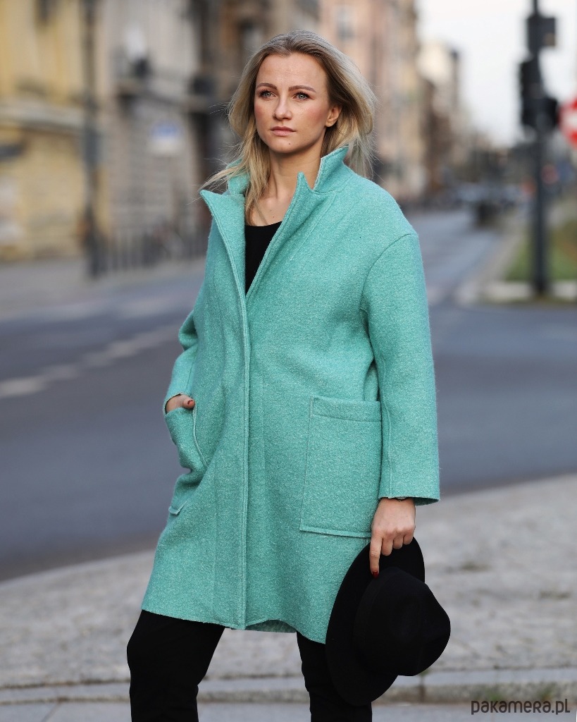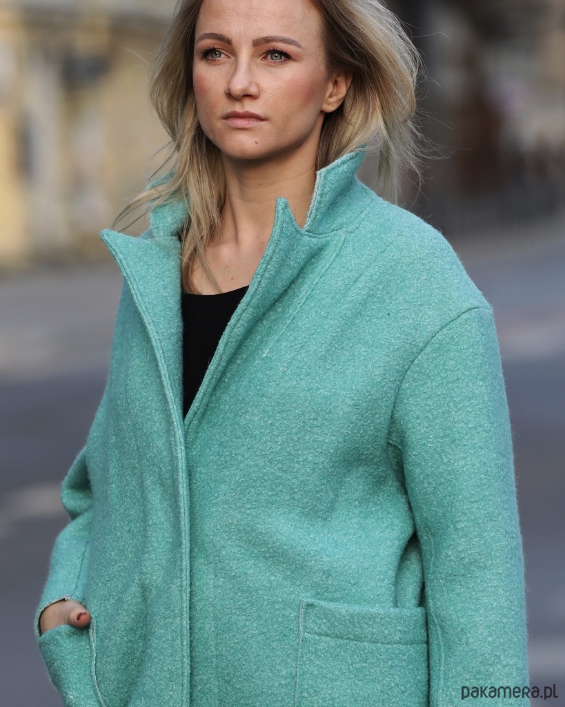 Swobodny dzianinowy płaszcz oversize w obłędnym miętowym kolorze. Luźna forma, lekko opuszczona linia ramion i surowe wykończenia nadają niepowtarzalnego charakteru Rao. Płaszcz zapinany na zatrzask, po bokach dwie pojemne kieszenie również wykończone na surowo. Świetny jesienią i wiosną, chociaż zima też mu nie straszna.