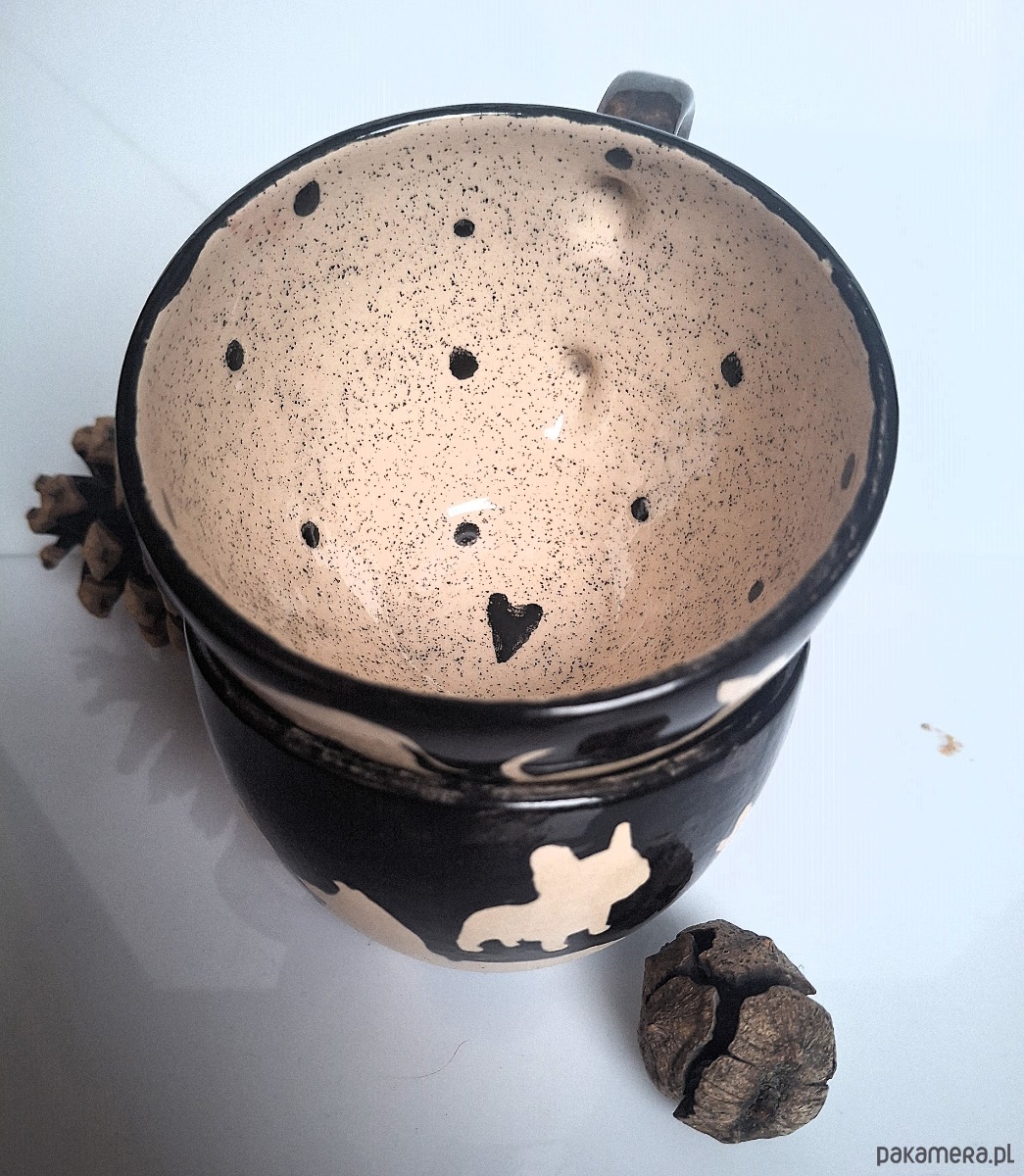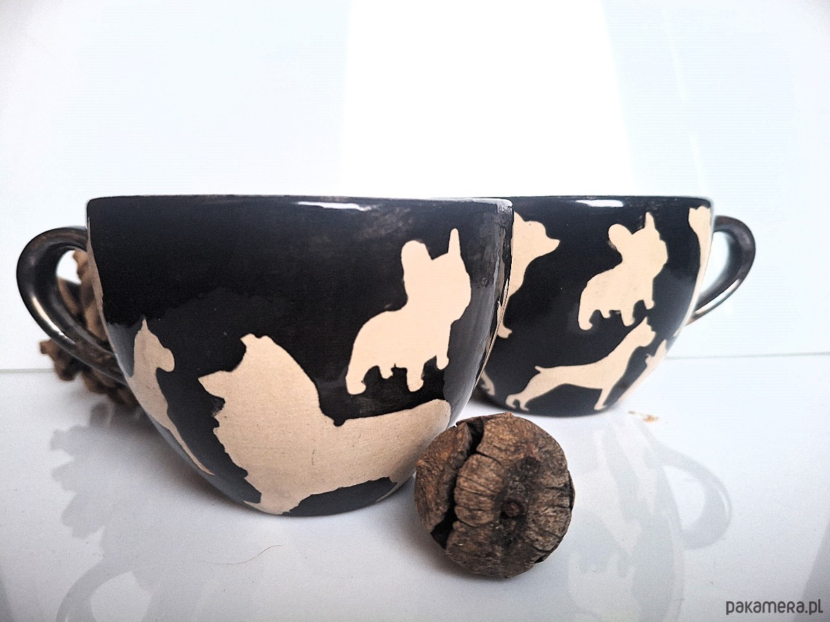 Zestaw 2 filiżanek handmade, ręcznie malowanych i zdobionych szkliwami oraz farbami firmy Mayco z certyfikatem bezpieczeństwa i dopuszczeniem do kontaktu z żywnością.