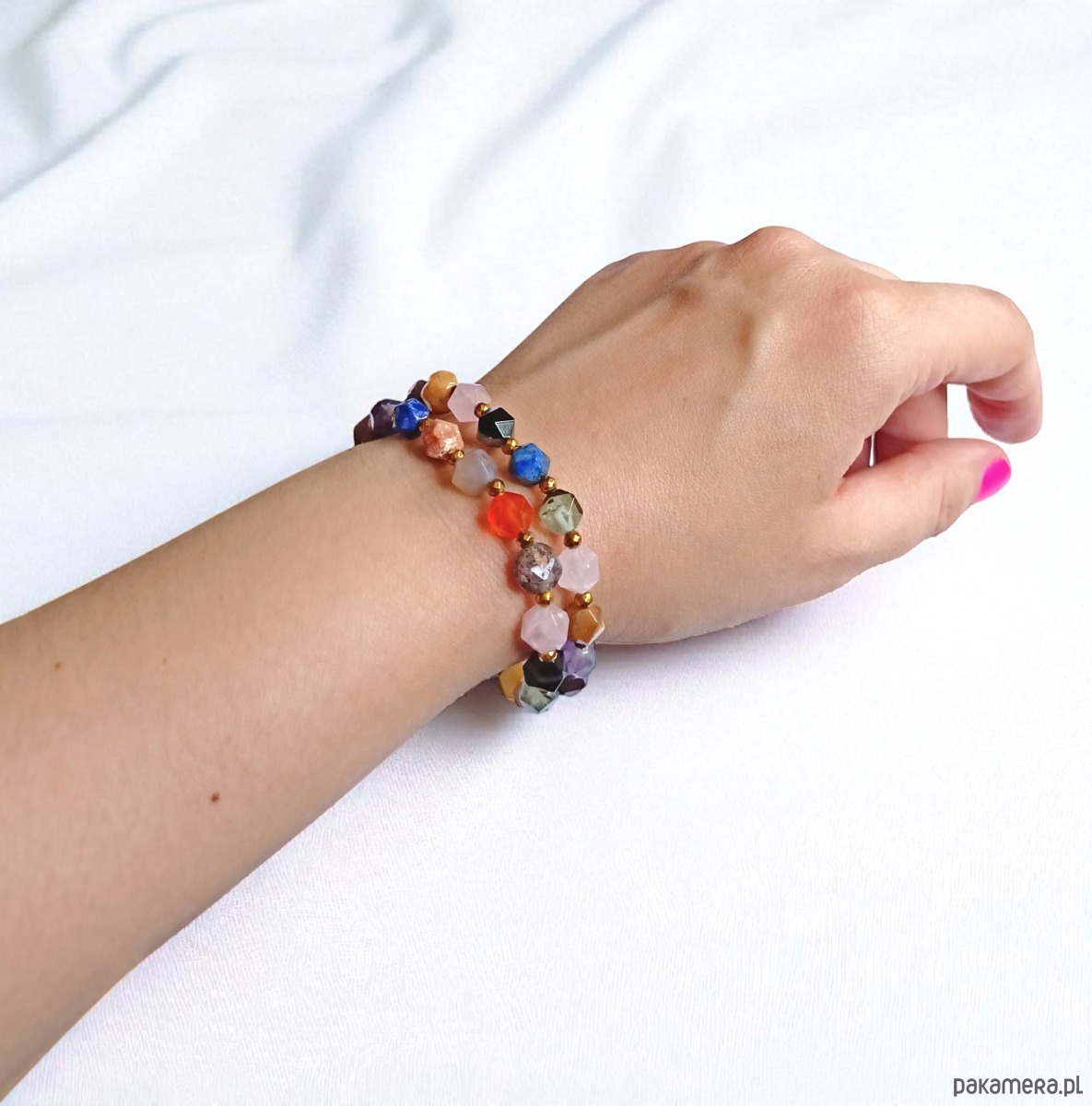 - Rodzaj kamienia: agat, amazonit, ametyst, jaspis, karneol, kwarc różowy, lapis lazuli, onyks