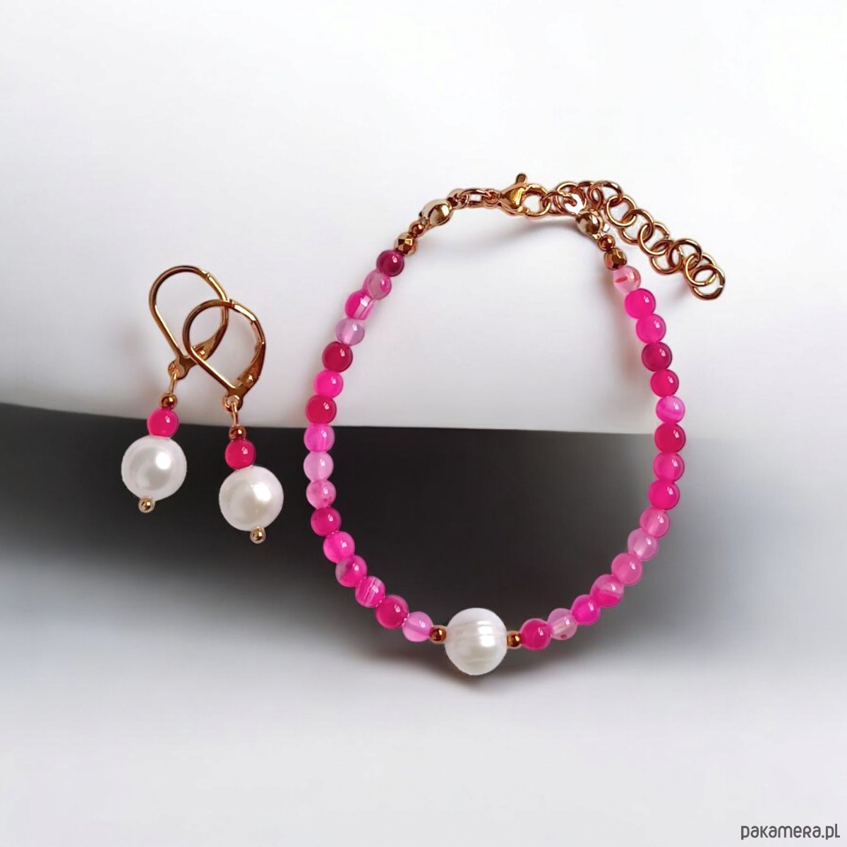 RAZEM TANIEJ! bransoletka & kolczyki : fuchsia & pearl collection