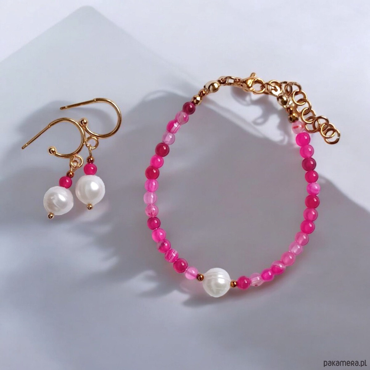RAZEM TANIEJ! bransoletka & kolczyki : fuchsia & pearl collection