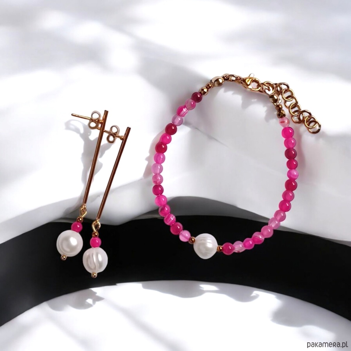 RAZEM TANIEJ! bransoletka & kolczyki : fuchsia & pearl collection