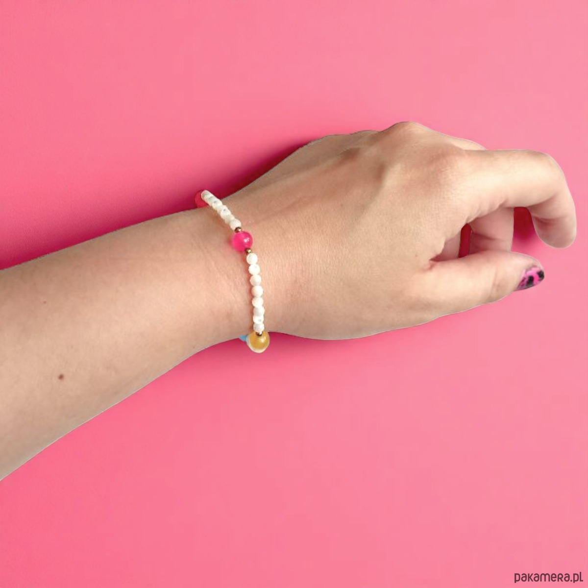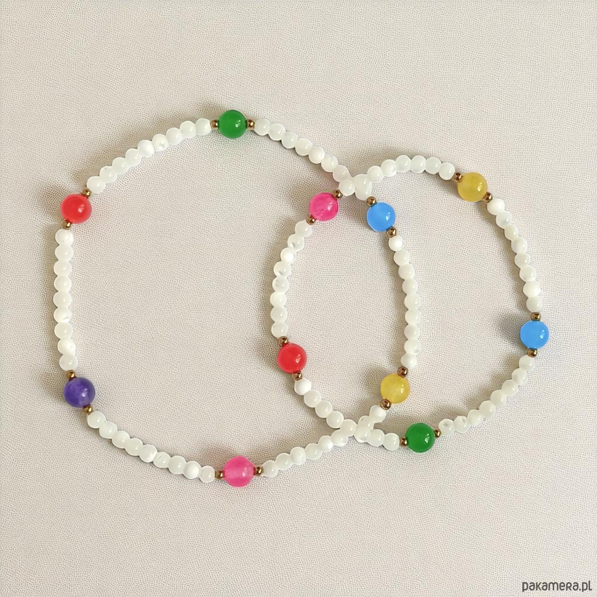 RAZEM TANIEJ! bransoletki na rękę i nogę : muszla biała i kolorowy jadeit