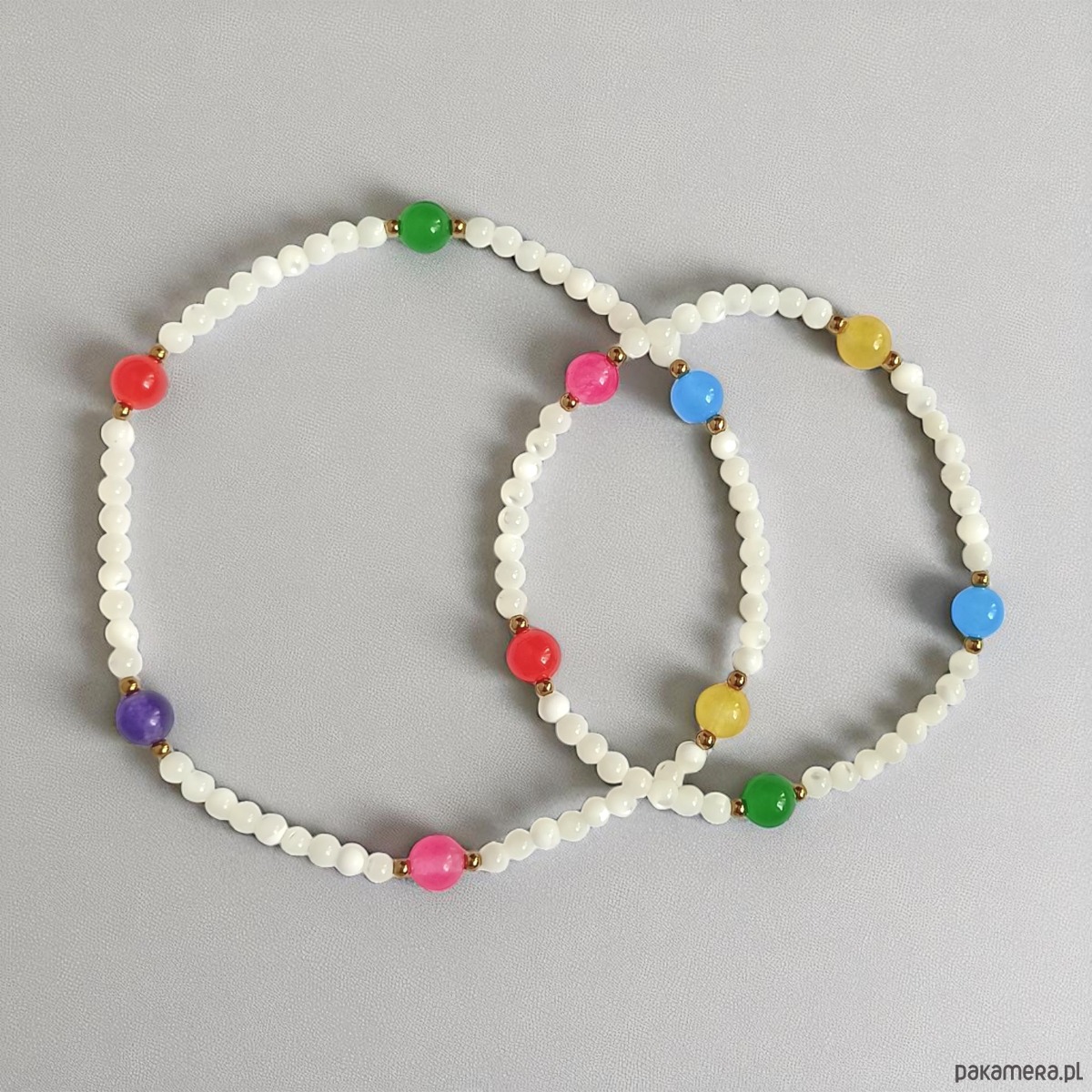 RAZEM TANIEJ! bransoletki na rękę i nogę : muszla biała i kolorowy jadeit