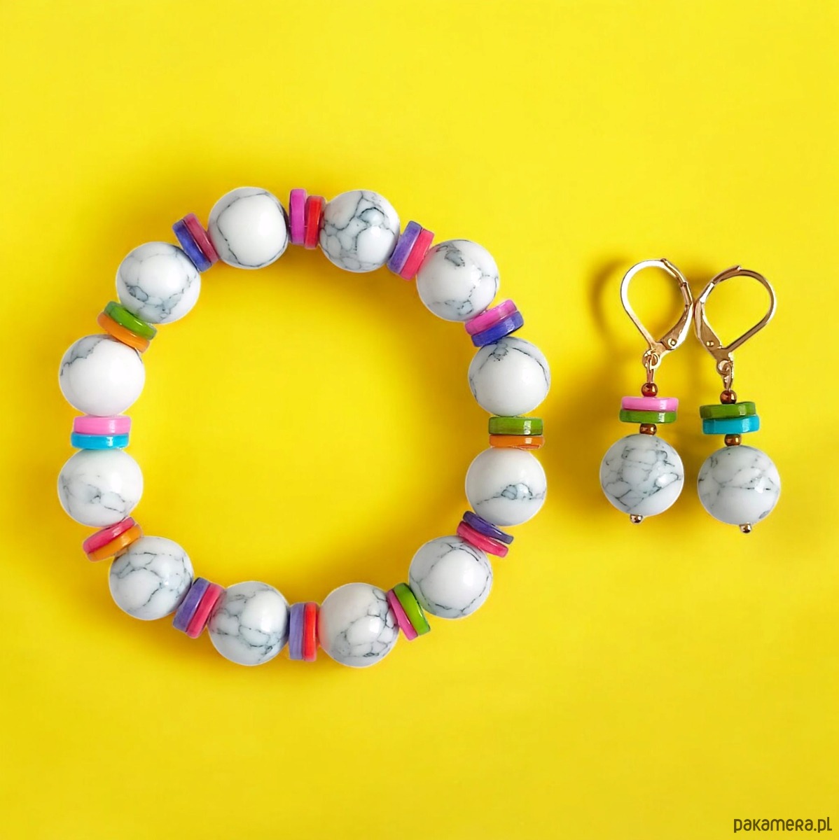 RAZEM TANIEJ! hot trend : bransoletka i kolczyki : howlit kolorowa muszla