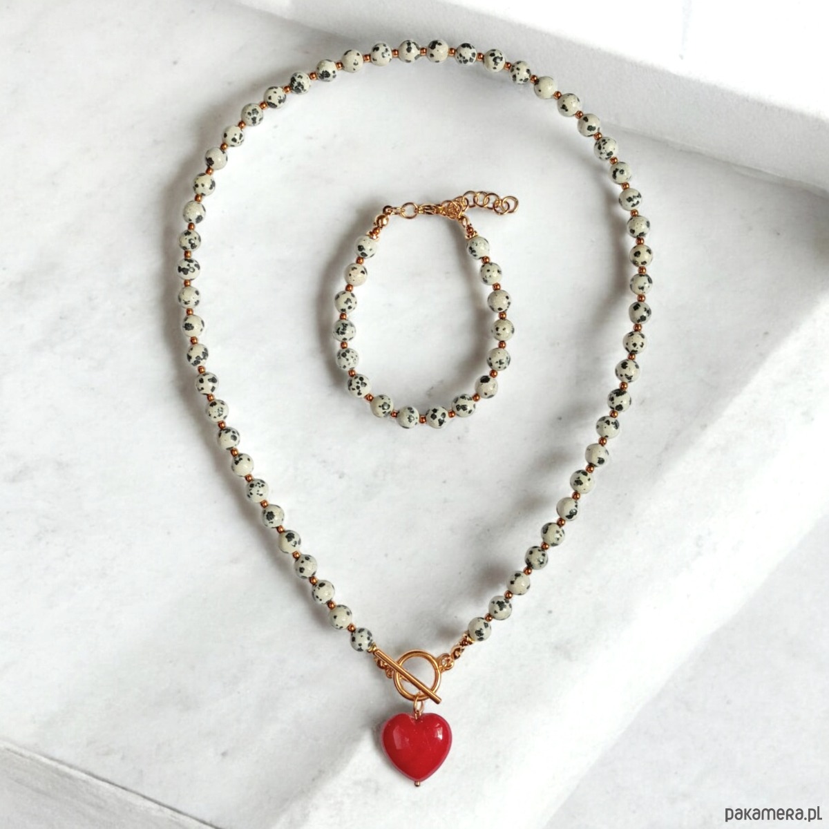 RAZEM TANIEJ : jaspis dalmatyński i serce : CZERWIEŃ : komplet