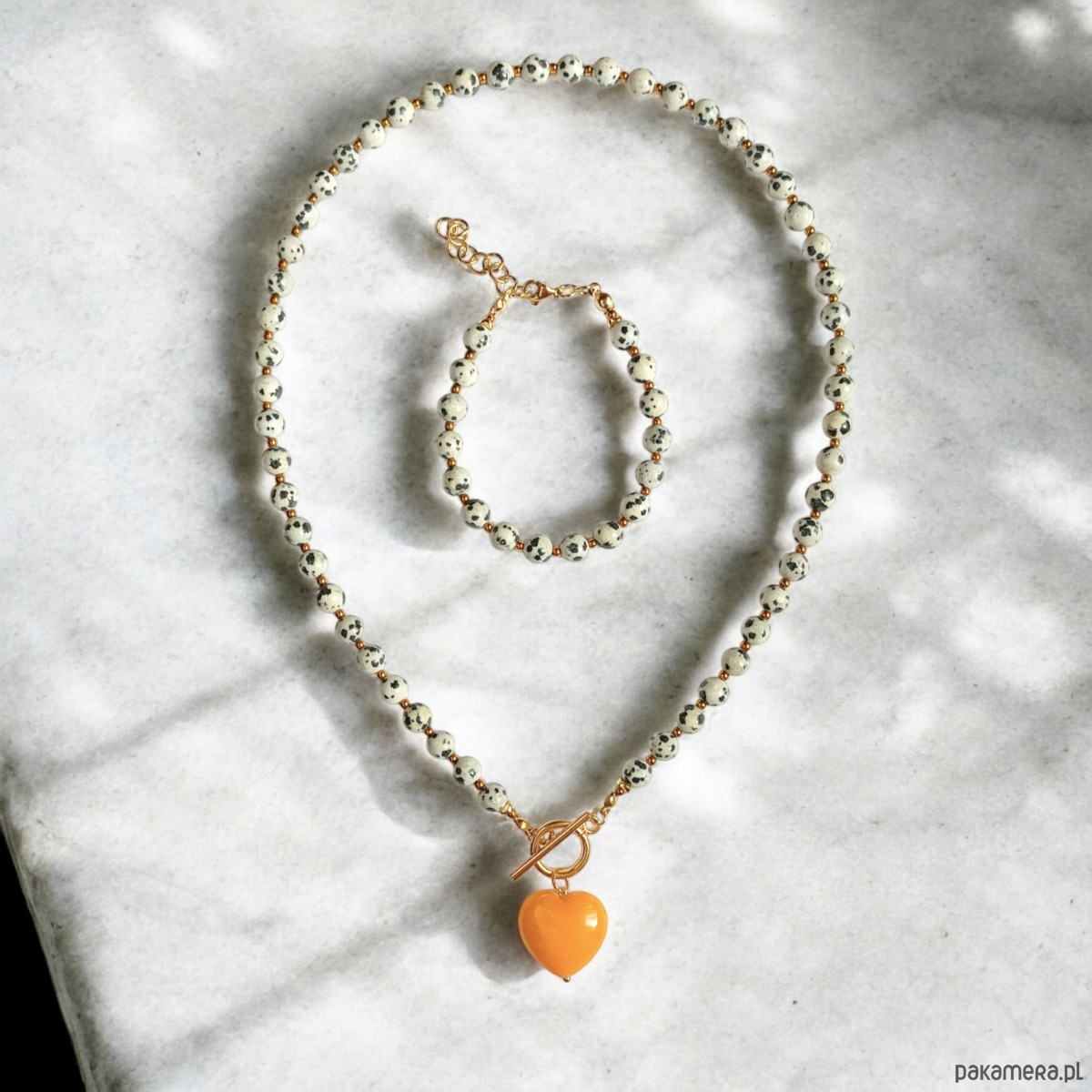 RAZEM TANIEJ : jaspis dalmatyński i serce : miodowe : komplet
