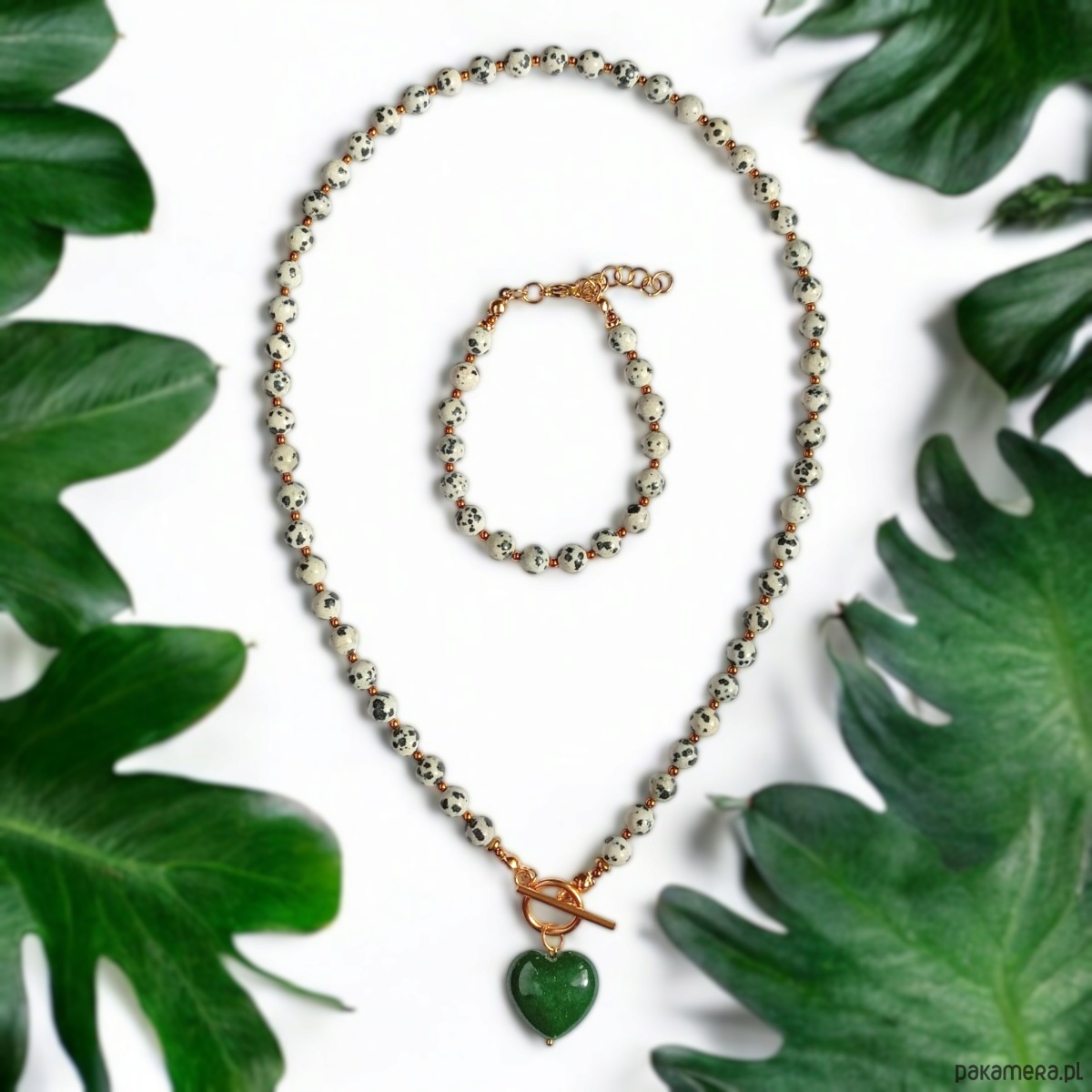 RAZEM TANIEJ : jaspis dalmatyński i serce : ZIELEŃ : komplet