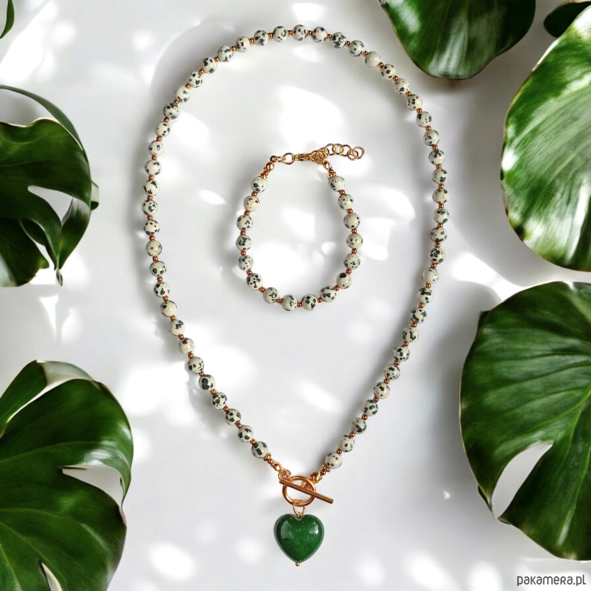 RAZEM TANIEJ : jaspis dalmatyński i serce : ZIELEŃ : komplet