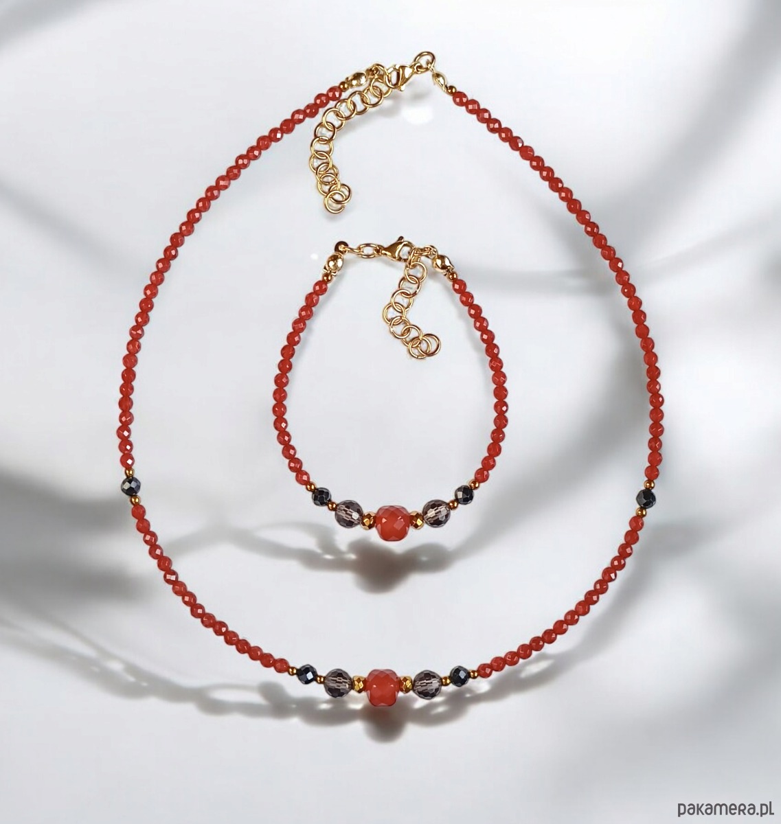 RAZEM TANIEJ! komplet jesienny : karneol, kwarc dymny, czarny turmalin