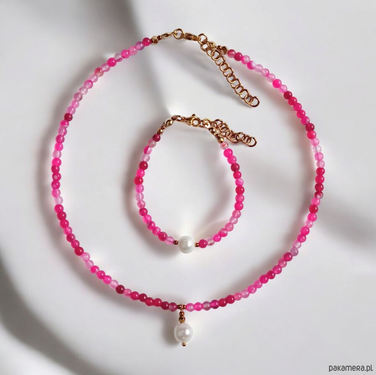 RAZEM TANIEJ! naszyjnik & bransoletka : fuchsia & pearl collection