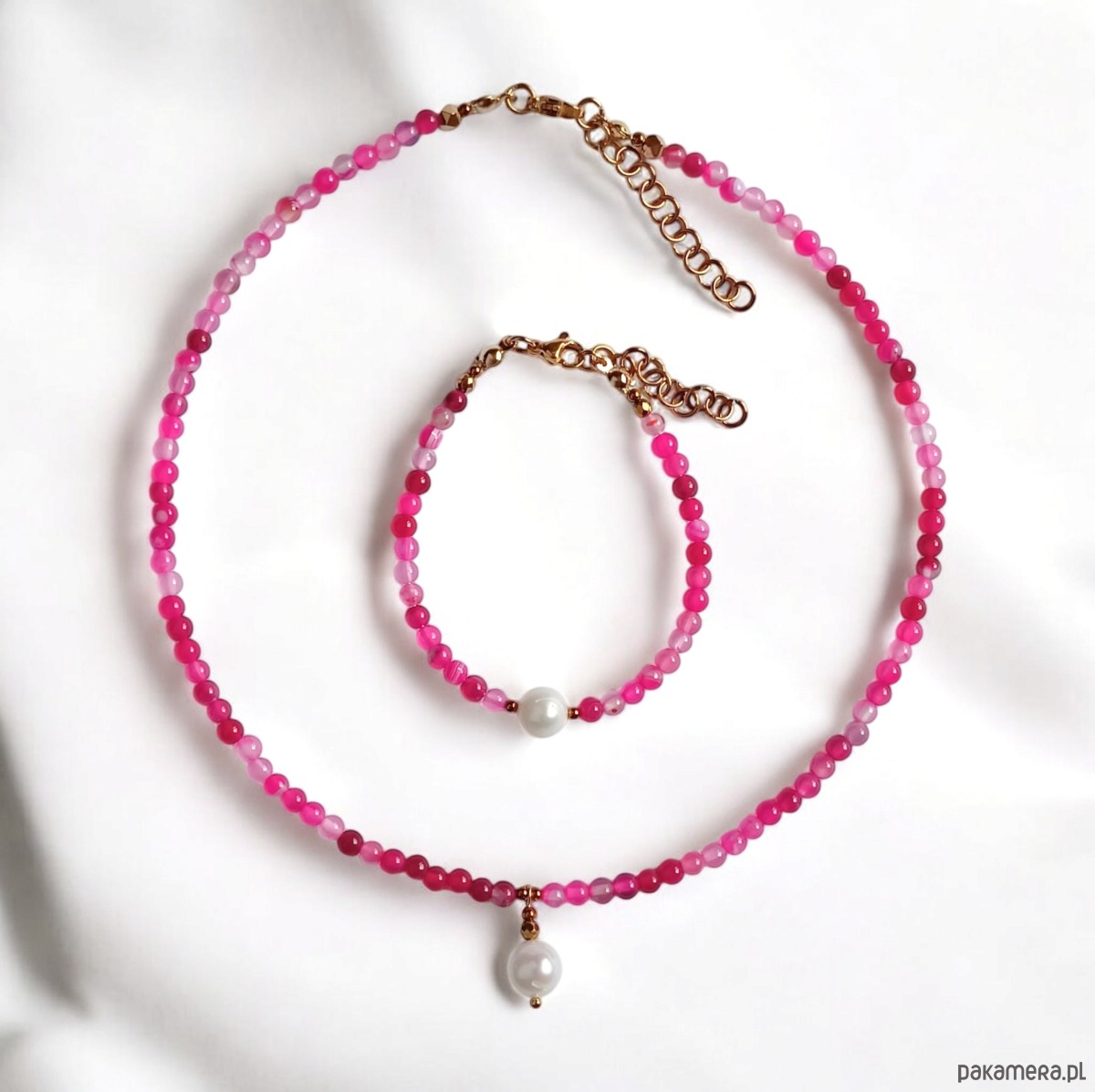 RAZEM TANIEJ! naszyjnik & bransoletka : fuchsia & pearl collection