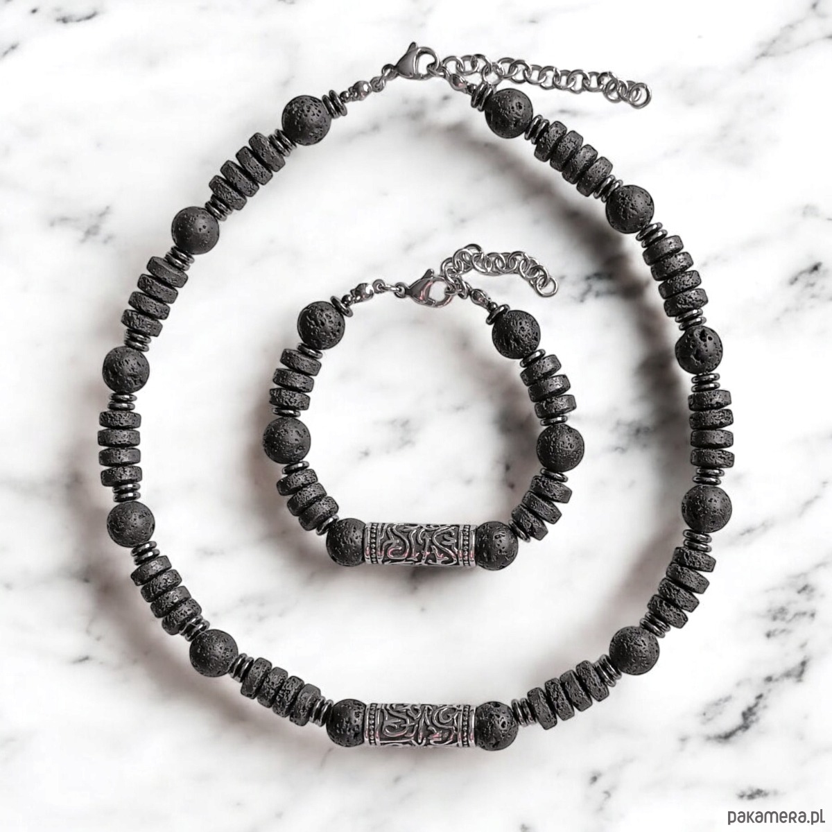 RAZEM TANIEJ! naszyjnik, bransoletka : lawa i stal szlachetna