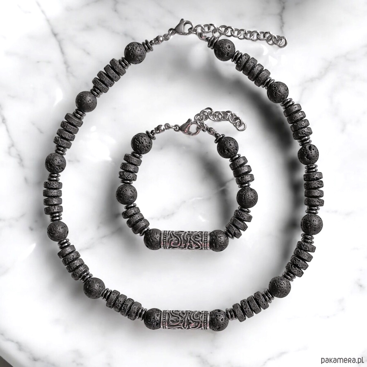 RAZEM TANIEJ! naszyjnik, bransoletka : lawa i stal szlachetna