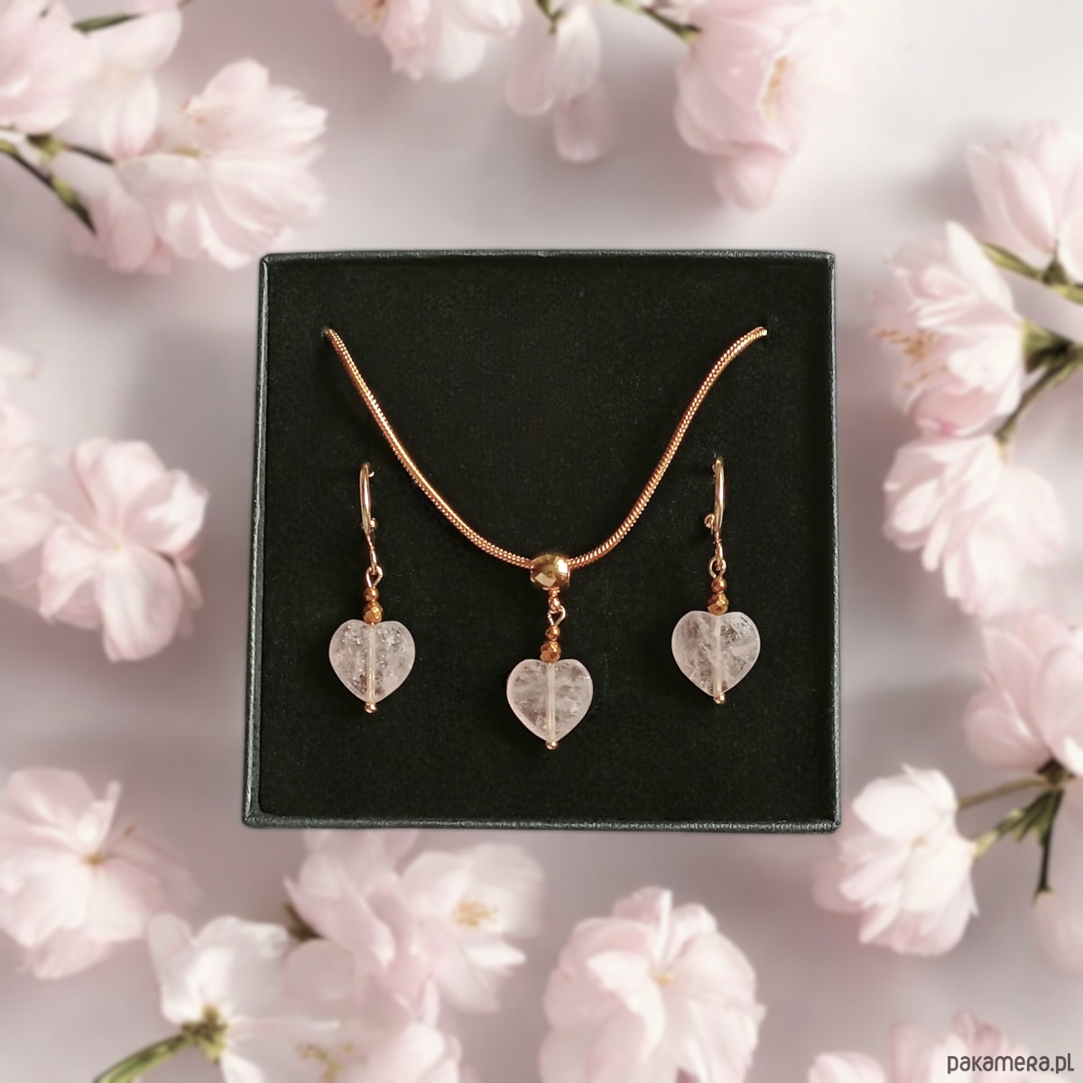 RAZEM TANIEJ! uroczy komplet: serduszko KWARC TRUSKAWKOWY : wyjątkowy prezent