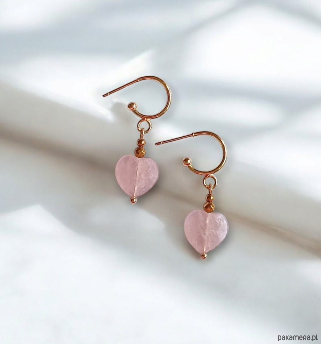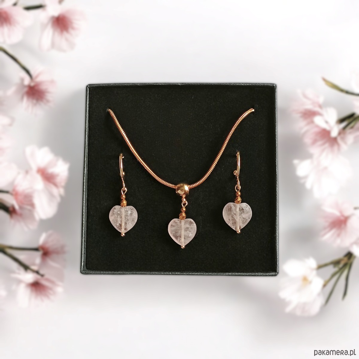 RAZEM TANIEJ! uroczy komplet: serduszko KWARC TRUSKAWKOWY : wyjątkowy prezent