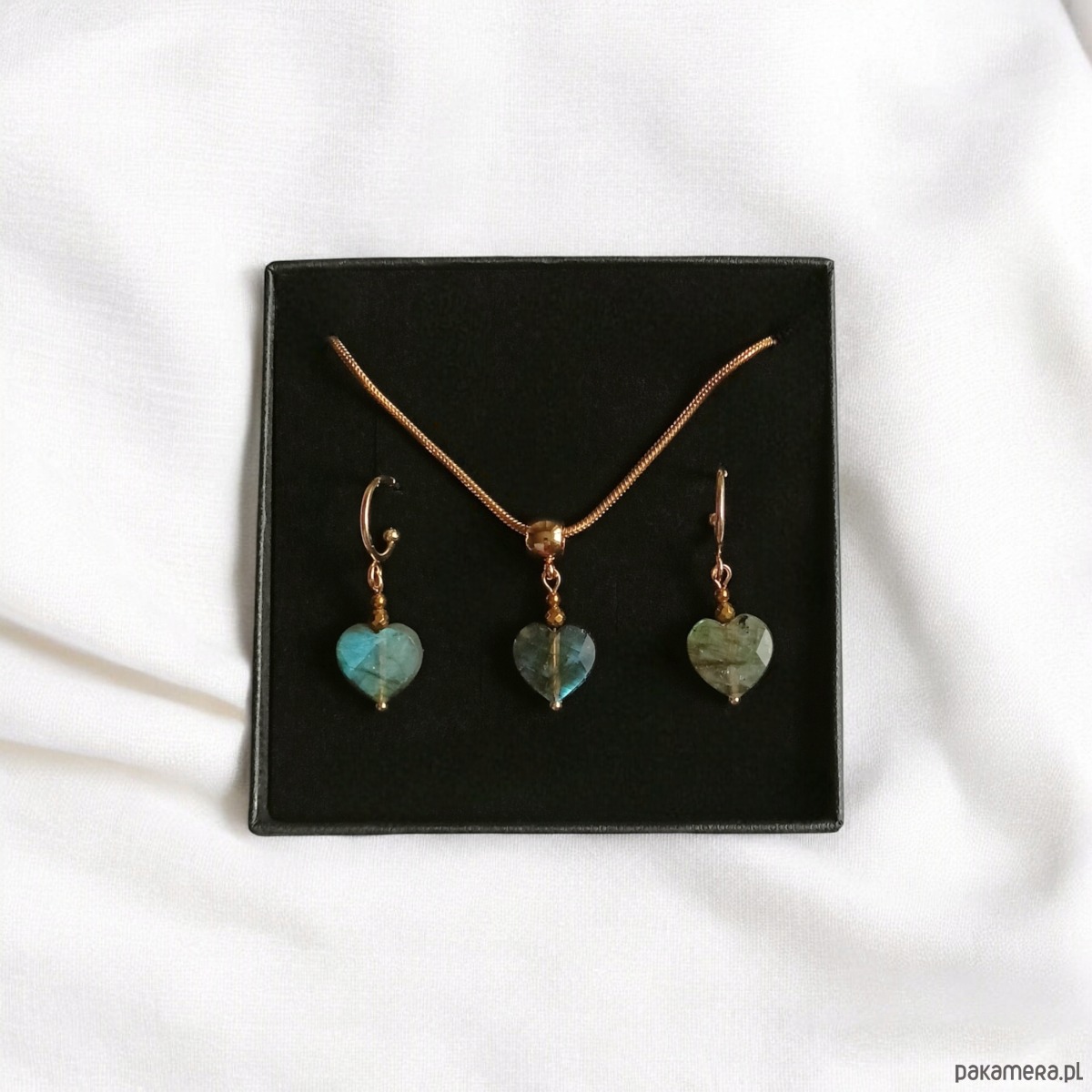 RAZEM TANIEJ! uroczy komplet: serduszko : LABRADORYT : prezent