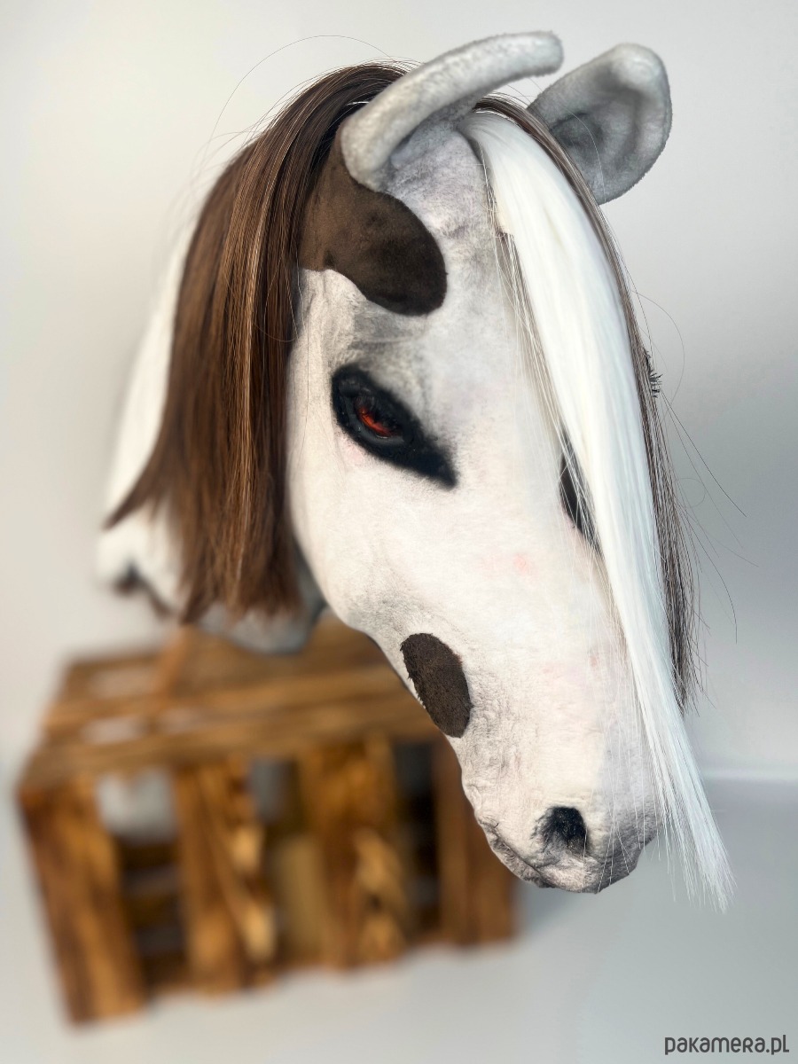 * Wysokiej jakości materiały: Model głowy konia wykonany jest z trwałej pianki poliuretanowej, którą otulamy miękkim materiałem typu minky. Delikatny połysk materiału doskonale imituje strukturę i wygląd prawdziwej końskiej sierści.
