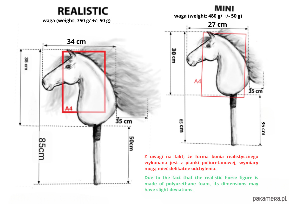 Realistyczny hobby horse został stworzony dzięki wyjątkowej technologii opracowanej przez zespół naszego sklepu od podstaw. Precyzyjna forma wiernie oddaje wygląd i anatomię prawdziwego konia, a detale, takiej jak uszy, oczy czy nozdrza prezentują się niezwykle naturalnie. Realistyczny efekt podkreśla ręczne cieniowanie konia farbą akrylową.